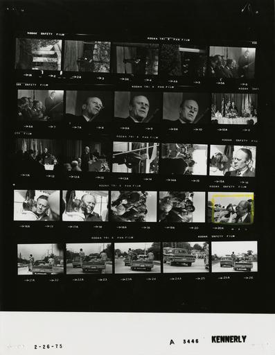 Keywords: Ford A3446 NLGRF photo contact sheet (1975-02-25)(Gerald Ford Library).jpg White House Photographic Office WHPO is housed at the Gerald R Ford Presidential Library a branch of the National Archives and Records Administration NARA <br/><br/> This file is a 200 dpi photo contact sheet having images from roll of film A3446 of the August 9 1974 - January 20 1977 Gerald R Ford White House Photographic Office Series A0001-A9999 and B0001-B2886 photographs <br/><br/> The date on the photo contact sheet is the date the roll of film was processed not necessarily the date the photographs were taken See table below for additional details 1975-02-25 Gerald R Ford Presidential Library Image http //www fordlibrarymuseum gov/library/whphotos/A3446_NLGRF jpg A3446_NLGRF jpg from http //www fordlibrarymuseum gov/library/whphotos/19750225whpo pdf White House Photographs February 25 1975 of the http //www fordlibrarymuseum gov/Library/whphotos/whpo asp White House Photographic Collection page White House Photographic Office WHPO <br/> Creator David Hume Kennerly PD-USGov Institution Institution Gerald R Ford Presidential Library Table wikitable sortable + Photo contact sheet A3446 U S President Ford Administration Gerald R Ford Library Frame s Tone Subject proper Subject generic Names Geographic Location Photographer Date - 1A-4A BW walking toward limousine GRF Marsh Sidewalk Between Oval Office and South Driveway Kennerly 1975-02-25 - 5A-6A BW National Bicentennial Conference; US Senator from Massachusetts MA Warner at lectern others seated laughing applauding GRF Warner Sen Brooke Others Washington DC Washington Hilton Hotel - International Ballroom Kennerly 1975-02-25 - 10A-12A BW Women's Forum on National Security GRF at podium; various distances GRF American Legion Ladies Auxiliary Washington DC Washington Hilton Hotel - International Ballroom Kennerly 1975-02-25 - 13A BW walking toward door; Marine One in background; hands in pockets GRF South Portico Kennerly 1975-02-25 - 14A BW Impromptu Press Conference talking; GRF's back to camera GRF Media South Portico Kennerly 1975-02-25 - 15A-17A BW Granddaughter of Lyndon Baines Johnson GRF holding girl under South Portico canopy laughing GRF Nicole Nugent South Portico Kennerly 1975-02-25 - 18A-20A BW Trip to Florida - Arrival in Fort Lauderdale Florida greeting handshaking; all not in every frame GRF Betty Ford Others Fort Lauderdale FL Fort Lauderdale-Hollywood International Airport Kennerly 1975-02-25 - 21A-25A BW Trip to Florida - Motorcade to the Diplomat Hotel - Fort Lauderdale Florida in limousine standing on running boards; taken from following vehicle Secret Service Fort Lauderdale FL Fort Lauderdale Streets Kennerly 1975-02-25 - 7A-9A BW National Bicentennial Conference at lectern speaking; taken from lower vantage point; close ups GRF Washington DC Washington Hilton Hotel - International Ballroom Kennerly 1975-02-25 Gerald R Ford Presidential Library and Museum-cooperation PD-USGov Contact sheets by the Ford White House February 1975 Photographs by David Hume Kennerly from 1975 |