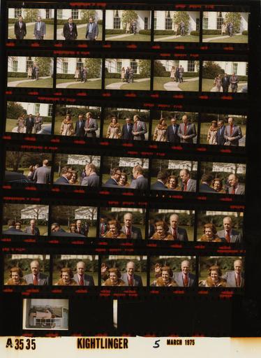 Keywords: Ford A3535 NLGRF photo contact sheet (1975-03-05)(Gerald Ford Library).jpg White House Photographic Office WHPO is housed at the Gerald R Ford Presidential Library a branch of the National Archives and Records Administration NARA <br/><br/> This file is a 200 dpi photo contact sheet having images from roll of film A3535 of the August 9 1974 - January 20 1977 Gerald R Ford White House Photographic Office Series A0001-A9999 and B0001-B2886 photographs <br/><br/> The date on the photo contact sheet is the date the roll of film was processed not necessarily the date the photographs were taken See table below for additional details 1975-03-05 Gerald R Ford Presidential Library Image http //www fordlibrarymuseum gov/library/whphotos/A3535_NLGRF jpg A3535_NLGRF jpg from http //www fordlibrarymuseum gov/library/whphotos/19750305whpo pdf White House Photographs March 5 1975 of the http //www fordlibrarymuseum gov/Library/whphotos/whpo asp White House Photographic Collection page White House Photographic Office WHPO - Kightlinger PD-USGov Institution Institution Gerald R Ford Presidential Library Table wikitable sortable + Photo contact sheet A3535 U S President Ford Administration Gerald R Ford Library Frame s Tone Subject proper Subject generic Names Geographic Location Photographer Date - 3A-4A Color walking toward camera; Oval Office in background Nessen Hushen Sidewalk Between Oval Office and South Driveway Kightlinger 1975-03-05 - 5A-17A Color Prior to Kissinger's Departure for Middle East walking toward camera; Oval Office in background GRF Betty Ford Kissinger Sidewalk Between Oval Office and South Driveway Kightlinger 1975-03-05 - 18A-24A Color Prior to Kissinger's Departure for Middle East saying goodbye HAK kissing BF in first frame; limousine in foreground GRF Betty Ford Kissinger Sidewalk Between Oval Office and South Driveway Kightlinger 1975-03-05 - 25A-32A Color Henry Kissinger's Departure for Middle East waving GRF Betty Ford Sidewalk Between Oval Office and South Driveway Kightlinger 1975-03-05 - 33A Color kissing near Cabinet Room door backs to camera; Scowcroft standing to side GRF Betty Ford Colonnade Kightlinger 1975-03-05 Gerald R Ford Presidential Library and Museum-cooperation PD-USGov Contact sheets by the Ford White House March 1975 |
