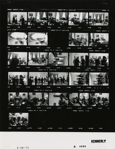 | Keywords: Ford A3556 NLGRF photo contact sheet (1975-03-06)(Gerald Ford Library).jpg White House Photographic Office WHPO is housed at the Gerald R Ford Presidential Library a branch of the National Archives and Records Administration NARA <br/><br/> This file is a 200 dpi photo contact sheet having images from roll of film A3556 of the August 9 1974 - January 20 1977 Gerald R Ford White House Photographic Office Series A0001-A9999 and B0001-B2886 photographs <br/><br/> The date on the photo contact sheet is the date the roll of film was processed not necessarily the date the photographs were taken See table below for additional details 1975-03-06 Gerald R Ford Presidential Library Image http //www fordlibrarymuseum gov/library/whphotos/A3556_NLGRF jpg A3556_NLGRF jpg from http //www fordlibrarymuseum gov/library/whphotos/19750306whpo pdf White House Photographs March 6 1975 of the http //www fordlibrarymuseum gov/Library/whphotos/whpo asp White House Photographic Collection page White House Photographic Office WHPO <br/> Creator David Hume Kennerly PD-USGov Institution Institution Gerald R Ford Presidential Library Table wikitable sortable + Photo contact sheet A3556 U S President Ford Administration Gerald R Ford Library Frame s Tone Subject proper Subject generic Names Geographic Location Photographer Date - 2 BW National Geographic Photographer handshaking GRF Bruce Dale Oval Office Kennerly 1975-03-06 - 3-6 BW seate talking at desk GRF Marsh Oval Office Kennerly 1975-03-06 - 7-8 BW standing on telephone Friedersdorf Scheduling and Advance Office Kennerly 1975-03-06 - 9 BW Kennerly 1975-03-06 - 10-13 BW seated around desk talking; all not in every frame; Hartmann's back to camera in 12 GRF Nessen Marsh Friedersdorf Cheney Hartmann Oval Office Kennerly 1975-03-06 - 14 BW walking hands on hips GRF Oval Office Kennerly 1975-03-06 - 15-21 BW Meeting to Discuss Aid to Cambodia greeting handshaking moving; all not in every frame GRF Sens Humphrey Case Sparkman; Marsh Friedersdorf Scowcroft Kendall Oval Office Kennerly 1975-03-06 - 22-27 BW Meeting to Discuss Aid to Cambodia seated talking near fireplace; all not in every frame GRF Sens Humphrey Case Sparkman; Marsh Friedersdorf Scowcroft Kendall Oval Office Kennerly 1975-03-06 Gerald R Ford Presidential Library and Museum-cooperation PD-USGov Contact sheets by the Ford White House March 1975 Photographs by David Hume Kennerly from 1975 |