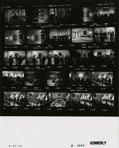 Keywords: Ford A3583 NLGRF photo contact sheet (1975-03-07)(Gerald Ford Library).jpg White House Photographic Office WHPO is housed at the Gerald R Ford Presidential Library a branch of the National Archives and Records Administration NARA <br/><br/> This file is a 200 dpi photo contact sheet having images from roll of film A3583 of the August 9 1974 - January 20 1977 Gerald R Ford White House Photographic Office Series A0001-A9999 and B0001-B2886 photographs <br/><br/> The date on the photo contact sheet is the date the roll of film was processed not necessarily the date the photographs were taken See table below for additional details 1975-03-07 Gerald R Ford Presidential Library Image http //www fordlibrarymuseum gov/library/whphotos/A3583_NLGRF jpg A3583_NLGRF jpg from http //www fordlibrarymuseum gov/library/whphotos/19750307whpo pdf White House Photographs March 7 1975 of the http //www fordlibrarymuseum gov/Library/whphotos/whpo asp White House Photographic Collection page White House Photographic Office WHPO <br/> Creator David Hume Kennerly PD-USGov Institution Institution Gerald R Ford Presidential Library Table wikitable sortable + Photo contact sheet A3583 U S President Ford Administration Gerald R Ford Library Frame s Tone Subject proper Subject generic Names Geographic Location Photographer Date - 2A-4A BW Prior to Swearing in of Secretary of Transportation walking toward camera GRF Mr Mrs William T Coleman Jr Cross Hall Kennerly 1975-03-07 - 5A-9A BW Swearing in of Secretary of Transportation standing on stager; various angles; long shots from back of room GRF William Coleman Jr Lovida Coleman William Coleman III Lovida Hardin Coleman Hardin Coleman Laura Coleman; Thurgood Marshall; Rockefeller; Sens Scott Brooke Hartke Pearson; Rep Rhodes; Robert Weaver Richard Levy Others East Room Kennerly 1975-03-07 - 10A BW Prior to Reception Following Swearing in of Secretary of Transportation awaiting arrival of guests for reception; long shot Wait Staff State Dining Room Kennerly 1975-03-07 - 11A-17A BW Reception Following Swearing in of Secretary of Transportation standing talking; various angles and distances; all not in every frame GRF William Coleman Jr Lovida Coleman William Coleman III Lovida Hardin Coleman Hardin Coleman Laura Coleman; Thurgood Marshall; Rockefeller; Sens Scott Brooke Hartke Pearson; Rep Rhodes; Robert Weaver Richard Levy Others State Dining Room Kennerly 1975-03-07 - 18A-19A BW Prior to Meeting With Representatives of the Tanker Industry - Associate Director of the Domestic Council for Natural Resources; Secretary of Labor standing talking under Mamie Eisenhower portrait Raoul-Duval Brennan Outside Cabinet Room Kennerly 1975-03-07 - 20A-26A BW Meeting With Representatives of the Tanker Industry standing talking in 20A 22A; seated around table talking in 23A-27A'; various angles and distances; all not in every frame GRF Paul Hall Jesse Calhoon Shannon Wall Page Groton Robert Lowen Cabinet Room Kennerly 1975-03-07 Gerald R Ford Presidential Library and Museum-cooperation PD-USGov Contact sheets by the Ford White House March 1975 Photographs by David Hume Kennerly from 1975 |