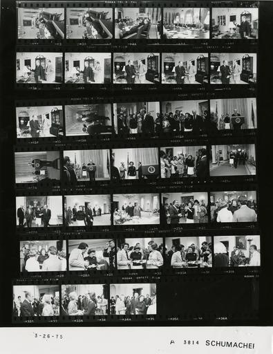 Keywords: Ford A3814 NLGRF photo contact sheet (1975-03-26)(Gerald Ford Library).jpg White House Photographic Office WHPO is housed at the Gerald R Ford Presidential Library a branch of the National Archives and Records Administration NARA <br/><br/> This file is a 200 dpi photo contact sheet having images from roll of film A3814 of the August 9 1974 - January 20 1977 Gerald R Ford White House Photographic Office Series A0001-A9999 and B0001-B2886 photographs <br/><br/> The date on the photo contact sheet is the date the roll of film was processed not necessarily the date the photographs were taken See table below for additional details 1975-03-26 Gerald R Ford Presidential Library Image http //www fordlibrarymuseum gov/library/whphotos/A3814_NLGRF jpg A3814_NLGRF jpg from http //www fordlibrarymuseum gov/library/whphotos/19750326whpo pdf White House Photographs March 26 1975 of the http //www fordlibrarymuseum gov/Library/whphotos/whpo asp White House Photographic Collection page White House Photographic Office WHPO - Schumacher PD-USGov Institution Institution Gerald R Ford Presidential Library Table wikitable sortable + Photo contact sheet A3814 U S President Ford Administration Gerald R Ford Library Frame s Tone Subject proper Subject generic Names Geographic Location Photographer Date - 3A-5A BW Republican Congressional Leadership Meeting at table; various angles; all not in every frame Hartmann Sens Griffin Scott GRF Reps Rhodes Anderson Cabinet Room Schumacher 1975-03-26 - 6A-12A BW Half-Brother standing talking; doublebreasted suit GRF Tom Ford Second Floor - West Sitting Room Schumacher 1975-03-26 - 13A-15A BW Prior to Address to Republican National Committee Staff National Republican Congressional Committee and Senatorial Committee walking toward East Room - BF not in first frame; doublebreasted suit GRF Betty Ford Others Cross Hall Schumacher 1975-03-26 - 16A-19A BW Address to Republican National Committee Staff National Republican Congressional Committee and Senatorial Committee GRF at podium; BF in background; doublebreasted suit GRF Betty Ford Others East Room Schumacher 1975-03-26 - 20A-21A BW Prior to Reception for Republican National Committee Staff National Republican Congressional Committee and Senatorial Committee walking toward State Dining Room - double-breasted suit GRF Betty Ford Others Cross Hall Schumacher 1975-03-26 - 22A-34A BW Reception for Republican National Committee Staff National Republican Congressional Committee and Senatorial Committee greeting talking handshaking - doublebreasted suit GRF Betty Ford Others State Dining Room Schumacher 1975-03-26 Gerald R Ford Presidential Library and Museum-cooperation PD-USGov Contact sheets by the Ford White House March 1975