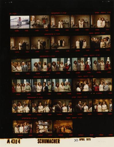 | Keywords: Ford A4304 NLGRF photo contact sheet (1975-04-30)(Gerald Ford Library).jpg White House Photographic Office WHPO is housed at the Gerald R Ford Presidential Library a branch of the National Archives and Records Administration NARA <br/><br/> This file is a 200 dpi photo contact sheet having images from roll of film A4304 of the August 9 1974 - January 20 1977 Gerald R Ford White House Photographic Office Series A0001-A9999 and B0001-B2886 photographs <br/><br/> The date on the photo contact sheet is the date the roll of film was processed not necessarily the date the photographs were taken See table below for additional details 1975-04-30 Gerald R Ford Presidential Library Image http //www fordlibrarymuseum gov/library/whphotos/A4304_NLGRF jpg A4304_NLGRF jpg from http //www fordlibrarymuseum gov/library/whphotos/19750430whpo pdf White House Photographs April 30 1975 of the http //www fordlibrarymuseum gov/Library/whphotos/whpo asp White House Photographic Collection page White House Photographic Office WHPO - Schumacher PD-USGov Institution Institution Gerald R Ford Presidential Library Table wikitable sortable + Photo contact sheet A4304 U S President Ford Administration Gerald R Ford Library Frame s Tone Subject proper Subject generic Names Geographic Location Photographer Date - 2A Color Arrival for American Cancer Society-Air France Luncheon - New York City New York walking down steps from Jet Star aircraft Betty Ford Weidenfeld Others New York City NY John F Kennedy International Airport Schumacher 1975-04-30 - 3A-11A Color Prior to American Cancer Society-Air France Luncheon - New York City New York greeting handshaking embracing posing; all not in every frame Betty Ford Amb Mrs George Feldman New York City NY Presidential Suite - Hotel Pierre Schumacher 1975-04-30 - 12A-29A Color American Cancer Society-Air France Luncheon - New York City New York greeting handshaking posing; all not in every frame Betty Ford Amb Mrs George Feldman Guests New York City NY Hotel Pierre - Regency Room Schumacher 1975-04-30 Gerald R Ford Presidential Library and Museum-cooperation PD-USGov Contact sheets by the Ford White House April 1975 |