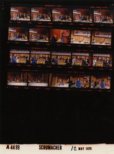| Keywords: Ford A4499 NLGRF photo contact sheet (1975-05-12)(Gerald Ford Library).jpg White House Photographic Office WHPO is housed at the Gerald R Ford Presidential Library a branch of the National Archives and Records Administration NARA <br/><br/> This file is a 200 dpi photo contact sheet having images from roll of film A4499 of the August 9 1974 - January 20 1977 Gerald R Ford White House Photographic Office Series A0001-A9999 and B0001-B2886 photographs <br/><br/> The date on the photo contact sheet is the date the roll of film was processed not necessarily the date the photographs were taken See table below for additional details 1975-05-12 Gerald R Ford Presidential Library Image http //www fordlibrarymuseum gov/library/whphotos/A4499_NLGRF jpg A4499_NLGRF jpg from http //www fordlibrarymuseum gov/library/whphotos/19750512whpo pdf White House Photographs May 12 1975 of the http //www fordlibrarymuseum gov/Library/whphotos/whpo asp White House Photographic Collection page White House Photographic Office WHPO - Schumacher PD-USGov Institution Institution Gerald R Ford Presidential Library Table wikitable sortable + Photo contact sheet A4499 U S President Ford Administration Gerald R Ford Library Frame s Tone Subject proper Subject generic Names Geographic Location Photographer Date - 3-22 Color Silver Humanitarian Award Presentation - Philadelphia Association for Retarded Citizens Dinner - Philadelphia Pennsylvania standing at table waving; introduction; BF receives award makes remarks Betty Ford Platform Guests Others Philadelphia PA Bellevue Stratford Hotel - Ballroom Schumacher 1975-05-12 Gerald R Ford Presidential Library and Museum-cooperation PD-USGov Contact sheets by the Ford White House May 1975 |