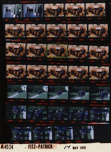 Keywords: Ford A4524 NLGRF photo contact sheet (1975-05-14)(Gerald Ford Library).jpg White House Photographic Office WHPO is housed at the Gerald R Ford Presidential Library a branch of the National Archives and Records Administration NARA <br/><br/> This file is a 200 dpi photo contact sheet having images from roll of film A4524 of the August 9 1974 - January 20 1977 Gerald R Ford White House Photographic Office Series A0001-A9999 and B0001-B2886 photographs <br/><br/> The date on the photo contact sheet is the date the roll of film was processed not necessarily the date the photographs were taken See table below for additional details 1975-05-14 Gerald R Ford Presidential Library Image http //www fordlibrarymuseum gov/library/whphotos/A4524_NLGRF jpg A4524_NLGRF jpg from http //www fordlibrarymuseum gov/library/whphotos/19750514whpo pdf White House Photographs May 14 1975 of the http //www fordlibrarymuseum gov/Library/whphotos/whpo asp White House Photographic Collection page White House Photographic Office WHPO - Fitz-Patrick PD-USGov Institution Institution Gerald R Ford Presidential Library Table wikitable sortable + Photo contact sheet A4524 U S President Ford Administration Gerald R Ford Library Frame s Tone Subject proper Subject generic Names Geographic Location Photographer Date - 3A Color Departure of Prime Minister of the Netherlands standing watching limousine not shown leave GRF Kissinger Sidewalk Between Oval Office and South Driveway Fitz-Patrick 1975-05-14 - 4-5 Color Prime Minister of the Netherlands walking toward Oval Office Johannes den Uyl Others Colonnade Fitz-Patrick 1975-05-14 - 6-23 Color Meeting With Prime Minister of the Netherlands seated near fireplace; various angles GRF Johannes den Uyl Oval Office Fitz-Patrick 1975-05-14 - 24-29 Color Following Meeting With Prime Minister of the Netherlands; Foreign Minister Ambassador walking talking; moving toward camera; all may not be in frames GRF Johannes den Uyl Max van der Stoel Age R Tammenoms Bakker Charles Rutten Kissinger Scowcroft Sidewalk Between Oval Office and South Driveway Fitz-Patrick 1975-05-14 - 30-37 Color Prime Minister of the Netherlands handshaking; saying goodbye GRF Johannes den Uyl South Driveway Fitz-Patrick 1975-05-14 Gerald R Ford Presidential Library and Museum-cooperation PD-USGov Contact sheets by the Ford White House May 1975 |