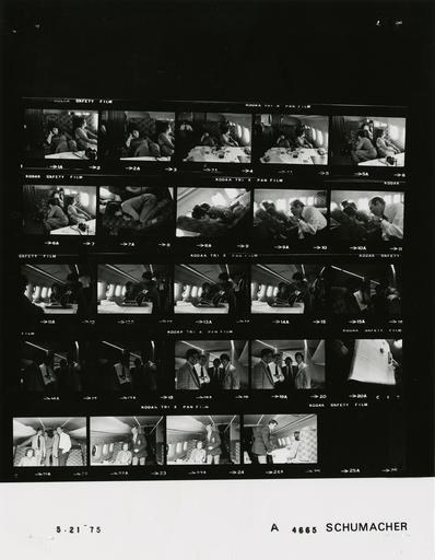 | Keywords: Ford A4665 NLGRF photo contact sheet (1975-05-18)(Gerald Ford Library).jpg White House Photographic Office WHPO is housed at the Gerald R Ford Presidential Library a branch of the National Archives and Records Administration NARA <br/><br/> This file is a 200 dpi photo contact sheet having images from roll of film A4665 of the August 9 1974 - January 20 1977 Gerald R Ford White House Photographic Office Series A0001-A9999 and B0001-B2886 photographs <br/><br/> The date on the photo contact sheet is the date the roll of film was processed not necessarily the date the photographs were taken See table below for additional details 1975-05-18 Gerald R Ford Presidential Library Image http //www fordlibrarymuseum gov/library/whphotos/A4665_NLGRF jpg A4665_NLGRF jpg from http //www fordlibrarymuseum gov/library/whphotos/19750518whpo pdf White House Photographs May 18 1975 of the http //www fordlibrarymuseum gov/Library/whphotos/whpo asp White House Photographic Collection page White House Photographic Office WHPO - Schumacher PD-USGov Institution Institution Gerald R Ford Presidential Library Table wikitable sortable + Photo contact sheet A4665 U S President Ford Administration Gerald R Ford Library Frame s Tone Subject proper Subject generic Names Geographic Location Photographer Date - 1A-10A BW Flight to Los Angeles California Weidenfeld and woman sleeping on seats; unidentified man harrassing Weidenfeld Unidentified Woman Others First Lady's C-9 Aircraft Schumacher 1975-05-18 - 11A-14 BW Flight to Los Angeles California BF seated; Weidenfeld standing leaning on back of seat Betty Ford Weidenfeld First Lady's C-9 Aircraft Schumacher 1975-05-18 - 15A-19A BW Flight to Los Angeles California standing posing Four Unidentified Men Secret Service First Lady's C-9 Aircraft Schumacher 1975-05-18 - 20A BW Flight to Los Angeles California First Lady's C-9 Aircraft Schumacher 1975-05-18 - 21A BW Flight to Los Angeles California BF seated; others standing in aisle Betty Ford; Four Unidentified Men Secret Service First Lady's C-9 Aircraft Schumacher 1975-05-18 - 22A-24A BW Flight to Los Angeles California BF seated; man standing in aisle Betty Ford; Unidentified Flight Steward First Lady's C-9 Aircraft Schumacher 1975-05-18 Gerald R Ford Presidential Library and Museum-cooperation PD-USGov Contact sheets by the Ford White House May 1975 |