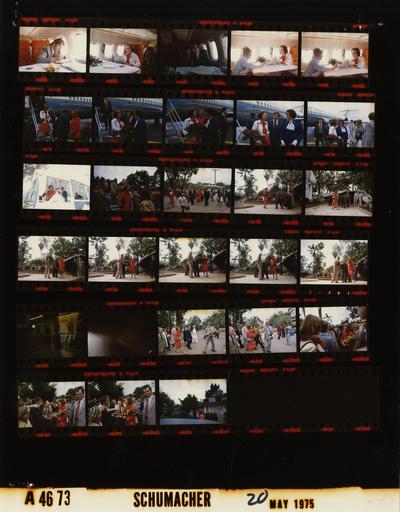 Keywords: Ford A4673 NLGRF photo contact sheet (1975-05-20)(Gerald Ford Library).jpg White House Photographic Office WHPO is housed at the Gerald R Ford Presidential Library a branch of the National Archives and Records Administration NARA <br/><br/> This file is a 200 dpi photo contact sheet having images from roll of film A4673 of the August 9 1974 - January 20 1977 Gerald R Ford White House Photographic Office Series A0001-A9999 and B0001-B2886 photographs <br/><br/> The date on the photo contact sheet is the date the roll of film was processed not necessarily the date the photographs were taken See table below for additional details 1975-05-20 Gerald R Ford Presidential Library Image http //www fordlibrarymuseum gov/library/whphotos/A4673_NLGRF jpg A4673_NLGRF jpg from http //www fordlibrarymuseum gov/library/whphotos/19750520whpo pdf White House Photographs May 20 1975 of the http //www fordlibrarymuseum gov/Library/whphotos/whpo asp White House Photographic Collection page White House Photographic Office WHPO - Schumacher PD-USGov Institution Institution Gerald R Ford Presidential Library Table wikitable sortable + Photo contact sheet A4673 U S President Ford Administration Gerald R Ford Library Frame s Tone Subject proper Subject generic Names Geographic Location Photographer Date - 22 Color Trip to California -Visit to San Diego Zoo -San Diego California looking at baby animals; all not in every frame Betty Ford Victor Krulak Charles Bieler Joan Embry San Diego CA San Diego Zoo - Nursery Schumacher 1975-05-20 - 2-6 Color Trip to California -Flight to San Diego seated working reading; all not in every frame; BF in 2nd 3rd 5th Betty Ford Staff First Lady's C-9 Aircraft Schumacher 1975-05-20 - 7-11 Color Trip to California - Arrival in San Diego - San Diego California greeting handshaking; BF receiving flowers; DC-9 in background Betty Ford Mr Mrs Leon Parma Others San Diego CA San Diego International Airport Schumacher 1975-05-20 - 12 Color Trip to California -Trip to San Diego - San Diego California greeting Betty Ford Unidentified Woman San Diego CA San Diego Schumacher 1975-05-20 - 13-14 Color Trip to California - Visit to San Diego Zoo -San Diego California walking through Zoo Grounds Betty Ford Victor Krulak Charles Bieler Joan Embry Others San Diego CA San Diego Zoo Schumacher 1975-05-20 - 15-21 Color Trip to California -Visit to San Diego Zoo -San Diego California looking at baby elephant Betty Ford Joan Embry San Diego CA San Diego Zoo Schumacher 1975-05-20 - 23 Color Schumacher 1975-05-20 - 24-28 Color Trip to California -Visit to San Diego Zoo -San Diego California BF walking carrying flowers; greeting Betty Ford Crowd San Diego CA San Diego Zoo Schumacher 1975-05-20 - 29 Color Trip to California -Prior to Luncheon at Parma Residence - San Diego California standing near limousine Betty Ford Mr Mrs Leon Parma San Diego CA Leon Parma Residence - Outside Schumacher 1975-05-20 Gerald R Ford Presidential Library and Museum-cooperation PD-USGov Contact sheets by the Ford White House May 1975 |