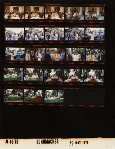 Keywords: Ford A4678 NLGRF photo contact sheet (1975-05-19)(Gerald Ford Library).jpg White House Photographic Office WHPO is housed at the Gerald R Ford Presidential Library a branch of the National Archives and Records Administration NARA <br/><br/> This file is a 200 dpi photo contact sheet having images from roll of film A4678 of the August 9 1974 - January 20 1977 Gerald R Ford White House Photographic Office Series A0001-A9999 and B0001-B2886 photographs <br/><br/> The date on the photo contact sheet is the date the roll of film was processed not necessarily the date the photographs were taken See table below for additional details 1975-05-19 Gerald R Ford Presidential Library Image http //www fordlibrarymuseum gov/library/whphotos/A4678_NLGRF jpg A4678_NLGRF jpg from http //www fordlibrarymuseum gov/library/whphotos/19750519whpo pdf White House Photographs May 19 1975 of the http //www fordlibrarymuseum gov/Library/whphotos/whpo asp White House Photographic Collection page White House Photographic Office WHPO - Schumacher PD-USGov Institution Institution Gerald R Ford Presidential Library Table wikitable sortable + Photo contact sheet A4678 U S President Ford Administration Gerald R Ford Library Frame s Tone Subject proper Subject generic Names Geographic Location Photographer Date - 3-5 Color Trip to California -Private Dinner Hosted by Mr Mrs Robert Johns Clark - Los Angeles California seated around table; all not in frames Betty Ford Guests Los Angeles CA Presidential Suite - Beverly Hilton Hotel Schumacher 1975-05-19 - 6-7 Color Trip to California -Departure for Pepperdine University - Beverly Hills California BF waving; limousine in foreground Betty Ford Secret Service Others Beverly Hills CA Beverly Wilshire Hotel - Outside Schumacher 1975-05-20 - 8-19 Color Trip to California -Arrival for Foster Grandparent Program - Malibu California greeting handshaking walking to head table; all not in every frame Betty Ford Mrs Alison Gilbert James Wilber Dr Mrs Bill Banowsky Kenneth Hahn Mrs Kaye Bixby Others Malibu CA Pepperdine University Schumacher 1975-05-20 - 20-22 Color Trip to California -Foster Grandparent Program - Oldest Foster Grandparent - Malibu California BF standing with Williams at podium; all may not be in frames Betty Ford Mrs Alison Gilbert James Wilber Dr Mrs Bill Banowsky Kenneth Hahn Mrs Kaye Bixby Pearl Williams Others Malibu CA Pepperdine University Schumacher 1975-05-20 - 23-25 Color Trip to California -Foster Grandparent Program - Oldest Foster Grandparent - Malibu California BF and Williams seated listening to speaker; all may not be in frames Betty Ford Mrs Alison Gilbert James Wilber Dr Mrs Bill Banowsky Kenneth Hahn Mrs Kaye Bixby Pearl Williams Others Malibu CA Pepperdine University Schumacher 1975-05-20 Gerald R Ford Presidential Library and Museum-cooperation PD-USGov Contact sheets by the Ford White House May 1975 |