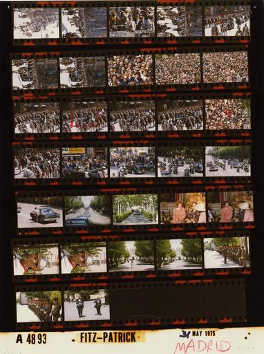 Keywords: Ford A4893 NLGRF photo contact sheet (1975-05-31)(Gerald Ford Library).jpg White House Photographic Office WHPO is housed at the Gerald R Ford Presidential Library a branch of the National Archives and Records Administration NARA <br/><br/> This file is a 200 dpi photo contact sheet having images from roll of film A4893 of the August 9 1974 - January 20 1977 Gerald R Ford White House Photographic Office Series A0001-A9999 and B0001-B2886 photographs <br/><br/> The date on the photo contact sheet is the date the roll of film was processed not necessarily the date the photographs were taken See table below for additional details 1975-05-31 Gerald R Ford Presidential Library Image http //www fordlibrarymuseum gov/library/whphotos/A4893_NLGRF jpg A4893_NLGRF jpg from http //www fordlibrarymuseum gov/library/whphotos/19750531whpo pdf White House Photographs May 31 1975 of the http //www fordlibrarymuseum gov/Library/whphotos/whpo asp White House Photographic Collection page White House Photographic Office WHPO - Fitz-Patrick PD-USGov Institution Institution Gerald R Ford Presidential Library Table wikitable sortable + Photo contact sheet A4893 U S President Ford Administration Gerald R Ford Library Frame s Tone Subject proper Subject generic Names Geographic Location Photographer Date - 1A-22A Color Trip to Spain - Ceremonial Parade to the Moncloa Palace GRF and Franco riding in Rolls-Royce R-R Phantom IV; standing waving; Guard surrounding car; crowd exclusively in some shots; various angles and distances GRF Generalissimo Francisco Franco; Mounted Ceremonial Guard; Crowd Madrid Spain Ceremonial Parade Route Fitz-Patrick 1975-05-31 - 23A Color Trip to Spain - Arrival at the Moncloa Palace on narrow lane between trees Motorcade Madrid Spain Moncloa Palace Grounds Fitz-Patrick 1975-05-31 - 24A-25A Color Trip to Spain - Meeting with Spanish Princess seated on sofa talking; unidentified woman ion left side Betty Ford Princess Sofia Madrid Spain Moncloa Palace - Library Schumacher 1975-05-31 - 26A-27A Color Trip to Spain wearing silver helmet Sentry Madrid Spain Moncloa Palace Grounds Schumacher 1975-05-31 - 28A-29A Color Trip to Spain Long shot up lane toward palace Madrid Spain Moncloa Palace Grounds Schumacher 1975-05-31 - 30A-31A Color Trip to Spain standing at ease Spanish Soldiers Madrid Spain Moncloa Palace Grounds Schumacher 1975-05-31 - 32A Color Trip to Spain walking across courtyard Media Madrid Spain Moncloa Palace Grounds Schumacher 1975-05-31 Gerald R Ford Presidential Library and Museum-cooperation PD-USGov Contact sheets by the Ford White House May 1975 |