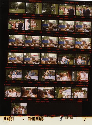 Keywords: Ford A4931 NLGRF photo contact sheet (1975-06-05)(Gerald Ford Library).jpg White House Photographic Office WHPO is housed at the Gerald R Ford Presidential Library a branch of the National Archives and Records Administration NARA <br/><br/> This file is a 200 dpi photo contact sheet having images from roll of film A4931 of the August 9 1974 - January 20 1977 Gerald R Ford White House Photographic Office Series A0001-A9999 and B0001-B2886 photographs <br/><br/> The date on the photo contact sheet is the date the roll of film was processed not necessarily the date the photographs were taken See table below for additional details 1975-06-05 Gerald R Ford Presidential Library Image http //www fordlibrarymuseum gov/library/whphotos/A4931_NLGRF jpg A4931_NLGRF jpg from http //www fordlibrarymuseum gov/library/whphotos/19750605whpo pdf White House Photographs June 5 1975 of the http //www fordlibrarymuseum gov/Library/whphotos/whpo asp White House Photographic Collection page White House Photographic Office WHPO - Thomas PD-USGov Institution Institution Gerald R Ford Presidential Library Table wikitable sortable + Photo contact sheet A4931 U S President Ford Administration Gerald R Ford Library Frame s Tone Subject proper Subject generic Names Geographic Location Photographer Date - 3A-5A Color walking toward driveway; GRF carrying papers GRF O'Donnell Secret Service Sidewalk Between Oval Office and South Driveway Thomas 1975-06-05 - 6A-8A Color Prior to Holton Arms Commencement Exercise - Susan Ford's High School Graduation -Bethesda Maryland greeting handshaking GRF Headmaster James Lewis Betty Ford Others Bethesda MD Holton Arms School - Grounds Thomas 1975-06-05 - 9A Color Prior to Holton Arms Commencement Exercise - Susan Ford's High School Graduation -Bethesda Maryland walking talking Betty Ford Mike Gayle Ford Clara Powell Others Bethesda MD Holton Arms School - Grounds Thomas 1975-06-05 - 10A-20A Color Holton Arms Commencement Exercise - Susan Ford's High School Graduation -Bethesda Maryland GRF seated; Lewis handing out diplomas Susan receiving diploma in 2nd and 3rd frames; other students in background Headmaster James Lewis Students Bethesda MD Holton Arms School - Amphitheater Thomas 1975-06-05 - 21A-25A Color Holton Arms Commencement Exercise - Susan Ford's High School Graduation -Bethesda Maryland embracing standing side by side; SF holding flowers Susan Ford Clara Powell Bethesda MD Holton Arms School - Amphitheater Thomas 1975-06-05 - 26A-28A Color Holton Arms Commencement Exercise - Susan Ford's High School Graduation -Bethesda Maryland embracing; SF holding flowers Betty Ford Susan Ford Bethesda MD Holton Arms School - Amphitheater Thomas 1975-06-05 - 29A-33A Color Holton Arms Commencement Exercise - Susan Ford's High School Graduation -Bethesda Maryland standing talking posing; all not in every frame Susan Ford Graduates Guests Bethesda MD Holton Arms School - Grounds Thomas 1975-06-05 Gerald R Ford Presidential Library and Museum-cooperation PD-USGov Contact sheets by the Ford White House June 1975 |