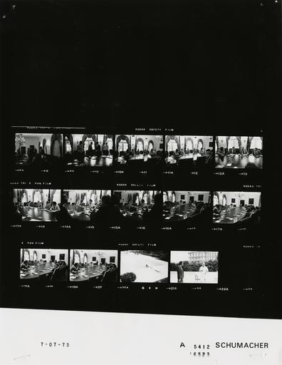 Keywords: Ford A5412 NLGRF photo contact sheet (1975-07-07)(Gerald Ford Library).jpg White House Photographic Office WHPO is housed at the Gerald R Ford Presidential Library a branch of the National Archives and Records Administration NARA <br/><br/> This file is a 200 dpi photo contact sheet having images from roll of film A5412 of the August 9 1974 - January 20 1977 Gerald R Ford White House Photographic Office Series A0001-A9999 and B0001-B2886 photographs <br/><br/> The date on the photo contact sheet is the date the roll of film was processed not necessarily the date the photographs were taken See table below for additional details 1975-07-07 Gerald R Ford Presidential Library Image http //www fordlibrarymuseum gov/library/whphotos/A5412_NLGRF jpg A5412_NLGRF jpg from http //www fordlibrarymuseum gov/library/whphotos/19750707whpo pdf White House Photographs July 7 1975 of the http //www fordlibrarymuseum gov/Library/whphotos/whpo asp White House Photographic Collection page White House Photographic Office WHPO - Schumacher PD-USGov Institution Institution Gerald R Ford Presidential Library Table wikitable sortable + Photo contact sheet A5412 U S President Ford Administration Gerald R Ford Library Frame s Tone Subject proper Subject generic Names Geographic Location Photographer Date - 9-20 BW Meeting With Governors Regarding Highway Message Signing Ceremony greeting handshaking; seated around table; various angles and distances; all not in frames GRF Govs Ray Rampton Moore O'Callaghan Bennett; Coleman Theodore Lutz Joseph Coupal Cannon Falk Raoul-Duval Nessen Friedersdorf Cabinet Room Schumacher 1975-07-07 - 21 BW in pool GRF Swimming Pool - White House Grounds Schumacher 1975-07-07 - 22 BW standing on pool edge talking; GRF in housecoat; OEOB in background GRF Unidentified Man Swimming Pool - White House Grounds Schumacher 1975-07-07 Gerald R Ford Presidential Library and Museum-cooperation PD-USGov Contact sheets by the Ford White House July 1975 |