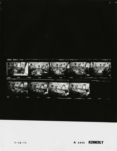 | Keywords: Ford A5445 NLGRF photo contact sheet (1975-07-10)(Gerald Ford Library).jpg White House Photographic Office WHPO is housed at the Gerald R Ford Presidential Library a branch of the National Archives and Records Administration NARA <br/><br/> This file is a 200 dpi photo contact sheet having images from roll of film A5445 of the August 9 1974 - January 20 1977 Gerald R Ford White House Photographic Office Series A0001-A9999 and B0001-B2886 photographs <br/><br/> The date on the photo contact sheet is the date the roll of film was processed not necessarily the date the photographs were taken See table below for additional details 1975-07-10 Gerald R Ford Presidential Library Image http //www fordlibrarymuseum gov/library/whphotos/A5445_NLGRF jpg A5445_NLGRF jpg from http //www fordlibrarymuseum gov/library/whphotos/19750710whpo pdf White House Photographs July 10 1975 of the http //www fordlibrarymuseum gov/Library/whphotos/whpo asp White House Photographic Collection page White House Photographic Office WHPO <br/> Creator David Hume Kennerly PD-USGov Institution Institution Gerald R Ford Presidential Library Table wikitable sortable + Photo contact sheet A5445 U S President Ford Administration Gerald R Ford Library Frame s Tone Subject proper Subject generic Names Geographic Location Photographer Date - 2 BW Following Meeting with Congressional Republican Leadership to Discuss Military Aid to Republic of Turkey - US Senator from Oregon OR seated in chairs near window talking; GRF writing in some frames GRF Sen Hatfield Cabinet Room Kennerly 1975-07-10 Gerald R Ford Presidential Library and Museum-cooperation PD-USGov Contact sheets by the Ford White House July 1975 Photographs by David Hume Kennerly from 1975 |