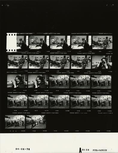 | Keywords: Ford A9138 NLGRF photo contact sheet (1976-04-05)(Gerald Ford Library).jpg dpi photo contact sheet having images from roll of film A9138 of the August 9 1974 - January 20 1977 Gerald R Ford abbreviated as GRF White House Photographic Office Series A0001-A9999 and B0001-B2886 photographs The April 6 1976 date on the photo contact sheet is the date the roll of film was processed not the date the photographs were taken The photo contact sheet is categorized in Wikimedia Commons by the date the photographs were taken <br/><br/>The photographs were taken on April 5 1976 by White House photographer William Fitz-Patrick using black and white tone Kodak 35 mm safety film 5063 Kodak Tri-X having a 36 exposure/24×36 frame size The photo contact sheet identified as A9138_NLGRF by the White House Photographic Office WHPO is from the Office of Presidential Libraries abbreviated as NL Gerald R Ford Library abbreviated as NLGRF 1976-04-05 Gerald R Ford Presidential Library Image http //www fordlibrarymuseum gov/library/whphotos/A9138_NLGRF jpg A9138_NLGRF jpg from http //www fordlibrarymuseum gov/library/whphotos/19760405whpo pdf White House Photographs April 5 1976 of the http //www fordlibrarymuseum gov/Library/whphotos/whpo asp White House Photographic Collection page William Fitz-Patrick PD-USGov Institution Institution Gerald R Ford Presidential Museum Gerald R Ford Presidential Library and Museum-cooperation Template NARA-image wikitable sortable + Photo contact sheet A9138 - U S President Ford Administration - Gerald R Ford Library NLGRF + View President Ford's Daily Diary activities log for April 5 1976 http //www fordlibrarymuseum gov/library/document/diary/pdd760405 pdf here - NARA<br/>Library Roll film Frame Tone Subject - Proper Subject - Generic Names Geographic Location Photographer Date taken Local<br/>time taken GMT<br/>time taken Subject geographic<br>latitude coordinates Subject geographic<br>longitude coordinates - NLGRF A9138 2-9 BW Meeting with Executive Producer of Director's Circle and Humor Consultant Don Penny and daughter seated at desk GRF Don Penny Schneider Lisa Schneider White House Oval Office Fitz-Patrick 1976-04-05 - NLGRF A9138 10 11 12 BW White House Photo Office Photo Editor holding camera seated by typewriter Sandra Eisert White House White House Photo Office Fitz-Patrick 1976-04-05 - NLGRF A9138 13-22 BW Signing Ceremony for Proclamation for Older Americans Month 1976 GRF seated making remarks signing; others standing behind; applauding; GRF standing walking away GRF Sec Mathews Stanley Thomas Arthur Fleming Victor Hruska John Martin Cleo Tavani Massengale White House Rose Garden Fitz-Patrick 1976-04-05 PD-USGov Contact sheets by the Ford White House April 1976 Photographs by William Fitz-Patrick |