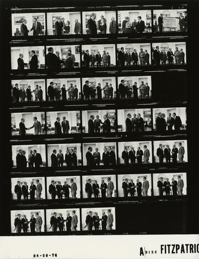 Keywords: Ford A9158 NLGRF photo contact sheet (1976-04-08)(Gerald Ford Library).jpg White House Photographic Office WHPO is housed at the Gerald R Ford Presidential Library a branch of the National Archives and Records Administration NARA <br/><br/> This file is a 200 dpi photo contact sheet having images from roll of film A9158 of the August 9 1974 - January 20 1977 Gerald R Ford White House Photographic Office Series A0001-A9999 and B0001-B2886 photographs <br/><br/> The date on the photo contact sheet is the date the roll of film was processed not necessarily the date the photographs were taken See table below for additional details 1976-04-08 Gerald R Ford Presidential Library Image http //www fordlibrarymuseum gov/library/whphotos/A9158_NLGRF jpg A9158_NLGRF jpg from http //www fordlibrarymuseum gov/library/whphotos/19760408whpo pdf White House Photographs April 8 1976 of the http //www fordlibrarymuseum gov/Library/whphotos/whpo asp White House Photographic Collection page White House Photographic Office WHPO - Fitz-Patrick PD-USGov Institution Institution Gerald R Ford Presidential Library Table wikitable sortable + Photo contact sheet A9158 U S President Ford Administration Gerald R Ford Library Frame s Tone Subject proper Subject generic Names Geographic Location Photographer Date - 3 BW Congressional Hour Present Crocheted Painting; US Senator from Maine ME standing handshaking GRF Sen William D Hathaway Oval Office Fitz-Patrick 1976-04-08 - 4-7 BW Congressional Hour Present Crocheted Painting; US Senator from Maine ME ; Resident of Caribou Maine Husband Son standing handshaking GRF Sen William D Hathaway Mrs Faris Stella Corey Faris Corey Lionel Corey Oval Office Fitz-Patrick 1976-04-08 - 8 BW Congressional Hour Present 150th Anniversary Coin Set; US Senator from Connecticut CT standing handshaking GRF Sen Lowell Weicker Jr Oval Office Fitz-Patrick 1976-04-08 - 9-16 BW Congressional Hour Present 150th Anniversary Coin Set; US Senator from Connecticut CT entering handshaking; standing holding coin set; all not in every frame GRF Sen Lowell Weicker Jr Jack Elmgren Leonard Henry Bucher John Andrews Johnson Oval Office Fitz-Patrick 1976-04-08 - 17 BW Fitz-Patrick 1976-04-08 - 18-19 BW Congressional Hour Present 2 Billionth Copy of New Testament by American Bible Society; US Senator from Rhode Island RI standing handshaking GRF Sen Claiborne Pell Oval Office Fitz-Patrick 1976-04-08 - 20-35 BW Congressional Hour Present 2 Billionth Copy of New Testament by American Bible Society; US Senator from Rhode Island RI standing holding coin set; all not in every frame GRF Sen Claiborne Pell; Edmund Wagner James Nettinga Oval Office Fitz-Patrick 1976-04-08 Gerald R Ford Presidential Library and Museum-cooperation PD-USGov Contact sheets by the Ford White House April 1976 |