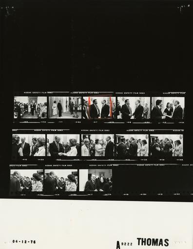 Keywords: Ford A9222 NLGRF photo contact sheet (1976-04-12)(Gerald Ford Library).jpg White House Photographic Office WHPO is housed at the Gerald R Ford Presidential Library a branch of the National Archives and Records Administration NARA <br/><br/> This file is a 200 dpi photo contact sheet having images from roll of film A9222 of the August 9 1974 - January 20 1977 Gerald R Ford White House Photographic Office Series A0001-A9999 and B0001-B2886 photographs <br/><br/> The date on the photo contact sheet is the date the roll of film was processed not necessarily the date the photographs were taken See table below for additional details 1976-04-12 Gerald R Ford Presidential Library Image http //www fordlibrarymuseum gov/library/whphotos/A9222_NLGRF jpg A9222_NLGRF jpg from http //www fordlibrarymuseum gov/library/whphotos/19760412whpo pdf White House Photographs April 12 1976 of the http //www fordlibrarymuseum gov/Library/whphotos/whpo asp White House Photographic Collection page White House Photographic Office WHPO - Thomas PD-USGov Institution Institution Gerald R Ford Presidential Library Table wikitable sortable + Photo contact sheet A9222 U S President Ford Administration Gerald R Ford Library Frame s Tone Subject proper Subject generic Names Geographic Location Photographer Date - 5 BW Reception for President Ford Committee PFC Staff and Volunteers Republican National Committee Staff and White House Staff entering; audience standing applauding GRF Betty Ford East Room Thomas 1976-04-12 - 6 BW Reception for President Ford Committee PFC Staff and Volunteers Republican National Committee Staff and White House Staff- Remarks; PFC Chairman Morton standing onstage Morton introducing GRF Betty Ford Rogers C B Morton East Room Thomas 1976-04-12 - 7-8 BW Reception for President Ford Committee PFC Staff and Volunteers Republican National Committee Staff and White House Staff - Special Assistant to the President for Minority Affairs standing talking GRF John Calhoun State Dining Room Thomas 1976-04-12 - 9-17 BW Reception for President Ford Committee PFC Staff and Volunteers Republican National Committee Staff and White House Staff mingling GRF Guests State Dining Room Thomas 1976-04-12 Gerald R Ford Presidential Library and Museum-cooperation PD-USGov Contact sheets by the Ford White House April 1976 |