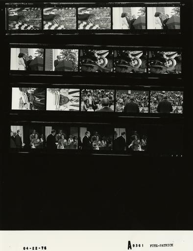 Keywords: Ford A9361 NLGRF photo contact sheet (1976-04-23)(Gerald Ford Library).jpg White House Photographic Office WHPO is housed at the Gerald R Ford Presidential Library a branch of the National Archives and Records Administration NARA <br/><br/> This file is a 200 dpi photo contact sheet having images from roll of film A9361 of the August 9 1974 - January 20 1977 Gerald R Ford White House Photographic Office Series A0001-A9999 and B0001-B2886 photographs <br/><br/> The date on the photo contact sheet is the date the roll of film was processed not necessarily the date the photographs were taken See table below for additional details 1976-04-23 Gerald R Ford Presidential Library Image http //www fordlibrarymuseum gov/library/whphotos/A9361_NLGRF jpg A9361_NLGRF jpg from http //www fordlibrarymuseum gov/library/whphotos/19760423whpo pdf White House Photographs April 23 1976 of the http //www fordlibrarymuseum gov/Library/whphotos/whpo asp White House Photographic Collection page White House Photographic Office WHPO - Fitz-Patrick PD-USGov Institution Institution Gerald R Ford Presidential Library Table wikitable sortable + Photo contact sheet A9361 U S President Ford Administration Gerald R Ford Library Frame s Tone Subject proper Subject generic Names Geographic Location Photographer Date - 1A-3A BW Campaign Trip to Georgia-Massing of the Colors Ceremony Sponsored by Military Order of the World Wars in Honor of Gold Star Mothers-Remarks standing outdoors at podium side view out of focus flags bordering photo GRF Atlanta GA Peachtree Presbyterian Church Fitz-Patrick 1976-04-23 - 4A-6A BW Campaign Trip to Georgia-Massing of the Colors Ceremony Sponsored by Military Order of the World Wars in Honor of Gold Star Mothers standing at podium GRF Minister Frank Harrington Mrs James Sosebee Atlanta GA Peachtree Presbyterian Church Fitz-Patrick 1976-04-23 - 7A BW Campaign Trip to Georgia-Massing of the Colors Ceremony Sponsored by Military Order of the World Wars in Honor of Gold Star Mothers-Remarks standing outdoors at podium GRF Atlanta GA Peachtree Presbyterian Church Fitz-Patrick 1976-04-23 - 8A-12A BW Campaign Trip to Georgia-Reception for Georgia State President Ford Committee PFC Staff Volunteers and delegates-Press close ups of three men wearing straw hats Unidentified Media Atlanta GA Radisson Inn Atlanta Fitz-Patrick 1976-04-23 - 13A-15A BW Campaign Trip to Georgia-Hotel Arrival GRF standing back to camera facing crowd of people GRF Crowd Atlanta GA Marriott Hotel Fitz-Patrick 1976-04-23 - 16A-18A BW Campaign Trip to Georgia-Dinner Hosted by Atlanta Women's Chapter of the Freedom's Foundation at Valley Forge standing at podium talking introductions GRF Mrs Barbara Fain Others Atlanta GA Marriott Hotel Fitz-Patrick 1976-04-23 Gerald R Ford Presidential Library and Museum-cooperation PD-USGov Contact sheets by the Ford White House April 1976 |