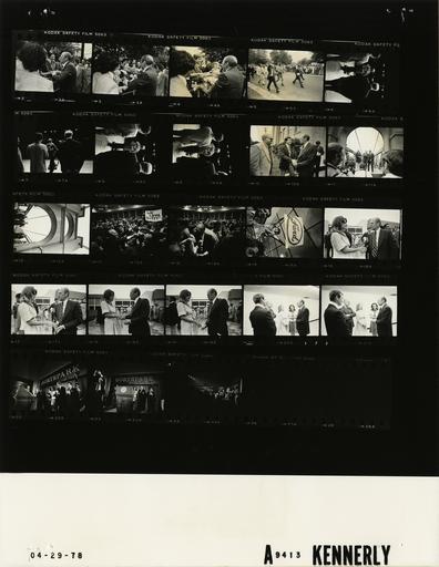 Keywords: Ford A9413 NLGRF photo contact sheet (1976-04-29)(Gerald Ford Library).jpg White House Photographic Office WHPO is housed at the Gerald R Ford Presidential Library a branch of the National Archives and Records Administration NARA <br/><br/> This file is a 200 dpi photo contact sheet having images from roll of film A9413 of the August 9 1974 - January 20 1977 Gerald R Ford White House Photographic Office Series A0001-A9999 and B0001-B2886 photographs <br/><br/> The date on the photo contact sheet is the date the roll of film was processed not necessarily the date the photographs were taken See table below for additional details 1976-04-29 Gerald R Ford Presidential Library Image http //www fordlibrarymuseum gov/library/whphotos/A9413_NLGRF jpg A9413_NLGRF jpg from http //www fordlibrarymuseum gov/library/whphotos/19760429whpo pdf White House Photographs April 29 1976 of the http //www fordlibrarymuseum gov/Library/whphotos/whpo asp White House Photographic Collection page White House Photographic Office WHPO <br/> Creator David Hume Kennerly PD-USGov Institution Institution Gerald R Ford Presidential Library Table wikitable sortable + Photo contact sheet A9413 U S President Ford Administration Gerald R Ford Library Frame s Tone Subject proper Subject generic Names Geographic Location Photographer Date - 2A-5A BW Primary Campaign Trip to Texas; Arriving for Baylor University Remarks - Waco Texas GRF working crowd at rope walking down street waving to crowd GRF Students Secret Service Waco TX Baylor University Kennerly 1976-04-29 - 6A-9A BW Primary Campaign Trip to Texas; Arriving for Baylor University Remarks - Waco Texas GRF at podium making remarks wearing Our Bear in the White House jacket; all standing on stage with backs to camera GRF Others Waco TX Baylor University Kennerly 1976-04-29 - 10A BW Primary Campaign Trip to Texas; Departing from Baylor University Remarks - Waco Texas handshaking outside GRF Others Waco TX Baylor University Kennerly 1976-04-29 - 11A-12A BW Primary Campaign Trip to Texas; Ribbon Cutting Ceremony Officially Starting Waco's Bicentennial Restoration Project; Remarks - Waco Texas standing on bridge GRF making remarks GRF Mayor M A Smith Roger Conger Sen John Tower Media Waco TX Waco Suspension Bridge - 1st Bridge Streets Kennerly 1976-04-29 - 13A-15A BW Primary Campaign Trip to Texas; Reception for Community Leaders Business Leaders PFC and Republican Leaders and Delegates - Waco Texas GRF standing in a sea of people handshaking; signs We Love Betty llittle girl holding Ford sign GRF Crowd Waco TX Waco Convention Center Kennerly 1976-04-29 - 16A-19A BW Primary Campaign Trip to Texas; Airport Departure - Waco Texas standing on tarmac talking GRF Unidentified Woman; Others Waco TX Texas State Technical Institute - James Connally Field Kennerly 1976-04-29 - 20A-21A BW Primary Campaign Trip to Texas-North Park Shopping Center Mall Remarks-prior to standing talking in hallway GRF Mr Mrs Tom Landry Mayor Mrs Robert Folsom Dallas TX North Park Shopping Mall Kennerly 1976-04-29 - 22A-24A BW Primary Campaign Trip to Texas-North Park Shopping Center Mall Remarks-prior to all onstage GRF waving making remarks GRF Mr Mrs Roy Nasher Mr Mrs Joseph Barta Sen John Tower Dallas TX North Park Shopping Mall Kennerly 1976-04-29 Gerald R Ford Presidential Library and Museum-cooperation PD-USGov Contact sheets by the Ford White House April 1976 Photographs by David Hume Kennerly from 1976 |