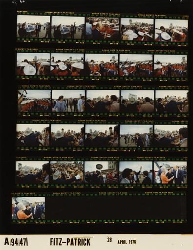 | Keywords: Ford A9447 NLGRF photo contact sheet (1976-04-28)(Gerald Ford Library).jpg White House Photographic Office WHPO is housed at the Gerald R Ford Presidential Library a branch of the National Archives and Records Administration NARA <br/><br/> This file is a 200 dpi photo contact sheet having images from roll of film A9447 of the August 9 1974 - January 20 1977 Gerald R Ford White House Photographic Office Series A0001-A9999 and B0001-B2886 photographs <br/><br/> The date on the photo contact sheet is the date the roll of film was processed not necessarily the date the photographs were taken See table below for additional details 1976-04-28 Gerald R Ford Presidential Library Image http //www fordlibrarymuseum gov/library/whphotos/A9447_NLGRF jpg A9447_NLGRF jpg from http //www fordlibrarymuseum gov/library/whphotos/19760428whpo pdf White House Photographs April 28 1976 of the http //www fordlibrarymuseum gov/Library/whphotos/whpo asp White House Photographic Collection page White House Photographic Office WHPO - Fitz-Patrick PD-USGov Institution Institution Gerald R Ford Presidential Library Table wikitable sortable + Photo contact sheet A9447 U S President Ford Administration Gerald R Ford Library Frame s Tone Subject proper Subject generic Names Geographic Location Photographer Date - 3-4 Color Primary Campaign Trip to Texas; Airport Departure for Fort Worth Texas - Tyler Texas Standing on tarmac with people holding banner Marshall All-American City; GRF wearing cowboy hat and waving GRF Sen John Tower County Republican PFC Officials local elected civic leaders Tyler TX Gregg County Airport Fitz-Patrick 1976-04-28 - 5-13 Color Primary Campaign Trip to Texas; Airport Departure for Fort Worth; Kilgore County Rangerettes - Tyler Texas GRF and Rangerettes standing together on tarmac; GRF wearing cowboy hat red buttonniere; Rangerettes in red costume white cowboy hat GRF Kilgore County Rangerettes Tyler TX Gregg County Airport Fitz-Patrick 1976-04-28 - 14-28 Color Primary Campaign Trip to Texas; Airport Departure for Fort Worth Texas - Tyler Texas walking on tarmac with USSS; GRF works crowd waving and wearing a cowboy hat and red carnation buttonniere; handshaking with woman in orange dress; various angles and distances; all not in every frame GRF Secret Service Crowd Sen John Tower Unidentified Woman Tyler TX Gregg County Airport Fitz-Patrick 1976-04-28 Gerald R Ford Presidential Library and Museum-cooperation PD-USGov Contact sheets by the Ford White House April 1976 |