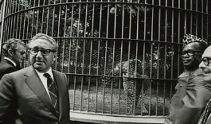 | Keywords: Ford A9613 NLGRF photo contact sheet (1976-04-27)(Gerald Ford Library1) (cropped).jpg White House Photographic Office WHPO is housed at the Gerald R Ford Presidential Library a branch of the National Archives and Records Administration NARA <br/><br/> This file is a 200 dpi photo contact sheet having images from roll of film A9613 of the August 9 1974 - January 20 1977 Gerald R Ford White House Photographic Office Series A0001-A9999 and B0001-B2886 photographs <br/><br/> The date on the photo contact sheet is the date the roll of film was processed not necessarily the date the photographs were taken See table below for additional details 1976-04-27 Gerald R Ford Presidential Library Image http //www fordlibrarymuseum gov/library/whphotos/A9613_NLGRF jpg A9613_NLGRF jpg from http //www fordlibrarymuseum gov/library/whphotos/19760427whpo pdf White House Photographs April 27 1976 of the http //www fordlibrarymuseum gov/Library/whphotos/whpo asp White House Photographic Collection page White House Photographic Office WHPO - Thomas PD-USGov Institution Institution Gerald R Ford Presidential Library Table wikitable sortable + Photo contact sheet A9613 U S President Ford Administration Gerald R Ford Library Frame s Tone Subject proper Subject generic Names Geographic Location Photographer Date - 5A-7A BW SecState Trip to Africa--SecState Trip to Africa--Arrival at President's Palace at Night standing in middle of room talking; sculpture beaded book on table Kissinger Charles W Robinson; Amb Walter Cutler William E Schaufele Jr Peter J Rodman Unidentified Kissinger staff; African man Kinshasa Zaire Africa President's Palace - Guesthouse Reception Room Thomas 1976-04-27 - 8A-12A BW SecState Trip to Africa--Breakfast with Zairian Foreign Minister Karl-i-Bond seated at rectangular dining table antlers and spears on wall below huge mural of natives Kissinger Jean Nguza Karl-i-Bond Charles W Robinson; Amb Walter Cutler William E Schaufele Jr Peter J Rodman; Unidentified African Official Kinshasa Zaire Africa President's Palace Thomas 1976-04-28 - 13A BW SecState Trip to Africa--Staff Suite standing in doorway reading newspapers William E Schaufele Jr Peter J Rodman Othersial Kinshasa Zaire Africa President's Palace - Kissinger Suite Thomas 1976-04-28 - 14A-16A BW SecState Trip to Africa--Women Waiting 3 African women one American woman seated on sofas by staircase talking Unidentified women Kinshasa Zaire Africa President's Palace Thomas 1976-04-28 - 17A-18A BW SecState Trip to Africa--Zairian Pres Mobutu Sese Seko standing in front of others under thatched roof on aptio Kissinger Mobutu Sese Seko Kinshasa Zaire Africa President's Palace Thomas 1976-04-28 - 19A-22A BW SecState Trip to Africa--Meeting on grass with Zairian President Mobutu Sese Seko; Zairian Foreign Minister Karl-i-Bond seated in lounge chairs on grass long view Kissinger Mobutu Sese Seko; Jean Nguza Karl-i-Bond; Amb Walter Cutler Charles W Robinson; William E Schaufele Jr Interpreter Others Kinshasa Zaire Africa President's Palace - Grass Thomas 1976-04-28 - 23A-27A BW SecState Trip to Africa--Meeting on grass with Zairian President Mobutu Sese Seko-departing from Mobuto shows guests caged leopard on Palace grounds; HAK Mobuto standing in front of leopard's cage; Robinson in front of leopard's cage Kissinger Mobutu Sese Seko Interpreter Charles W Robinson; Others Kinshasa Zaire Africa President's Palace - Zoo Thomas 1976-04-28 - 28A BW SecState Trip to Africa--Meeting on grass with Zairian President Mobutu Sese Seko-departing from Mobuto escorts HAK and entourage through Palace grounds; walking down steps with interpreter Kissinger Mobutu Sese Seko Interpreter Entourage Kinshasa Zaire Africa President's Palace Thomas 1976-04-28 - 29A BW SecState Trip to Africa--Boarding Pres Mobutu Sese Seko's Riverboat; Zairian Foreign Minister Karl-i-Bond standing by ramp to boat handshaking with officers Kissinger Jean Nguza Karl-i-Bond Entourage Zairian officers Kinshasa Zaire Africa Mobutu's Triple-Decked Riverboat Thomas 1976-04-28 - 30A-34A BW SecState Trip to Africa--DepSecState Addressing Unidentified Zairian officials Robinson at microphone others seated on platform; audience listening; television on Charles W Robinson; William Schaufele Jr Amb Walter Cutler Malcolm Butler notetaker Unidentified African Officials Kinshasa Zaire Africa Mobutu's Triple-Decked Riverboat Thomas 1976-04-28 - 35A-37 BW SecState Trip to Africa-Luncheon Aboard Mobutu's Riverboat serving themselves at luncheon buffet Kissinger Mobutu Sese Seko Entourage Kinshasa Zaire Africa Mobutu's Triple-Decked Riverboat Thomas 1976-04-28 Gerald R Ford Presidential Library and Museum-cooperation PD-USGov Contact sheets by the Ford White House April 1976 Henry Kissinger in 1976 Mobutu Sese Seko 1976 in Zaire Relations of the United States and Zaire in 1976 Ford A9613 NLGRF photo contact sheet 1976-04-27 Gerald Ford Library jpg |
