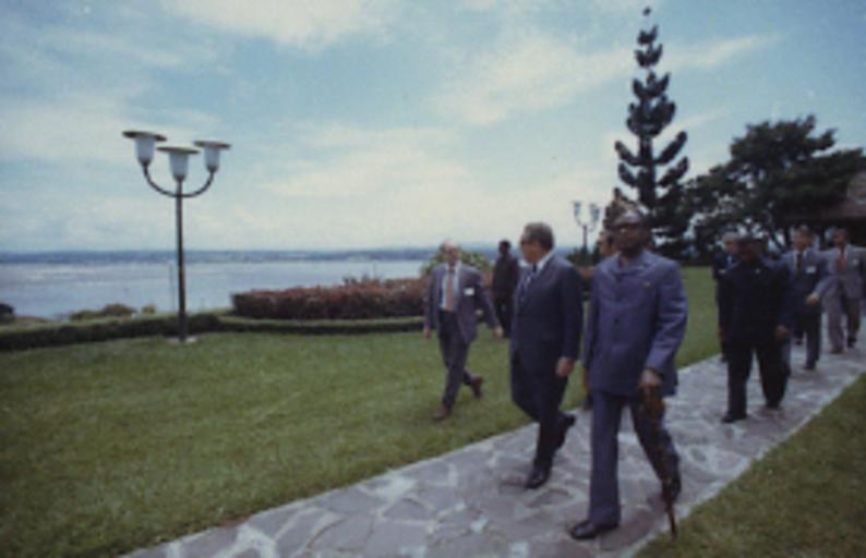 Keywords: Ford A9614 NLGRF photo contact sheet (1976-04-28c)(Gerald Ford Library) (cropped).jpg White House Photographic Office WHPO is housed at the Gerald R Ford Presidential Library a branch of the National Archives and Records Administration NARA <br/><br/> This file is a 200 dpi photo contact sheet having images from roll of film A9614 of the August 9 1974 - January 20 1977 Gerald R Ford White House Photographic Office Series A0001-A9999 and B0001-B2886 photographs <br/><br/> The date on the photo contact sheet is the date the roll of film was processed not necessarily the date the photographs were taken See table below for additional details 1976-04-28 Gerald R Ford Presidential Library Image http //www fordlibrarymuseum gov/library/whphotos/A9614_NLGRF jpg A9614_NLGRF jpg from http //www fordlibrarymuseum gov/library/whphotos/19760428whpo pdf White House Photographs April 28 1976 of the http //www fordlibrarymuseum gov/Library/whphotos/whpo asp White House Photographic Collection page White House Photographic Office WHPO - Thomas PD-USGov Ford A9614 NLGRF photo contact sheet 1976-04-28 Gerald Ford Library jpg Ford A9614 NLGRF photo contact sheet 1976-04-28a Gerald Ford Library cropped jpg Ford A9614 NLGRF photo contact sheet 1976-04-28b Gerald Ford Library cropped jpg Institution Institution Gerald R Ford Presidential Library Table wikitable sortable + Photo contact sheet A9614 U S President Ford Administration Gerald R Ford Library Frame s Tone Subject proper Subject generic Names Geographic Location Photographer Date - 3A-4A Color SecState Trip to Africa--Post-Breakfast Meeting with Zairian Pres Mobutu Sese Seko-first meeting; Zairian Foreign Minister Karl-i-Bond seated in deck chairs in shade; drinks on low coffee table talking midrange Kissinger Mobutu Sese Seko; Jean Nguza Karl-i-Bond; Amb Walter Cutler Charles W Robinson; William E Schaufele Jr Interpreter Others Kinshasa Zaire Africa President's Palace - Pavillon on grass overlooking Congo River Thomas 1976-04-28 - 5A-8A Color SecState Trip to Africa--Post-Breakfast Meeting with Zairian Pres Mobutu Sese Seko-first meeting; Zairian Foreign Minister Karl-i-Bond seated in deck chairs in shade long view Kissinger Mobutu Sese Seko; Jean Nguza Karl-i-Bond; Amb Walter Cutler Charles W Robinson; William E Schaufele Jr Interpreter Others Kinshasa Zaire Africa President's Palace - Pavillon on grass overlooking Congo River Thomas 1976-04-28 - 9A-10A Color SecState Trip to Africa--Meeting on grass with Zairian President Mobutu Sese Seko-departing from standing on stone pathway by caged animal Kissinger Mobutu Sese Seko Entourage Kinshasa Zaire Africa President's Palace - Grounds Thomas 1976-04-28 - 11A-19A Color SecState Trip to Africa--Meeting on grass with Zairian President Mobutu Sese Seko-departing from; enroute to riverboat walking on stone pavement through Palace grounds by river talking; passing fenced in pelicans Kissinger Mobutu Sese Seko Entourage Kinshasa Zaire Africa President's Palace - Zoo Thomas 1976-04-28 - 20A-23A Color SecState Trip to Africa--View of Ship on Congo River by Mobuto's Riverboat view of boat on river laden with native men looking at camera African Native Men Kinshasa Zaire Africa Congo River Thomas 1976-04-28 - 24A Color SecState Trip to Africa Kinshasa Zaire Thomas 1976-04-28 - 25A-29A Color SecState Trip to Africa--Afternoon Meeting with Zairian Pres Mobutu Sese Seko; Zairian Foreign Minister Karl-i-Bond seated in padded chairs on grass blue umbrella for shade pavillon's red awning in foreground Kissinger Mobutu Sese Seko; Jean Nguza Karl-i-Bond; Amb Walter Cutler Charles W Robinson; William E Schaufele Jr Interpreter Others Kinshasa Zaire Africa President's Palace - Pavillon on grass overlooking Congo River Thomas 1976-04-28 - 5-10 Color SecState Trip to Africa--Arrival in Zaire Greeting handshaking Kissinger Others Kinshasa Zaire Africa Airport Thomas 1976-04-28 Gerald R Ford Presidential Library and Museum-cooperation PD-USGov Contact sheets by the Ford White House April 1976 1976 in Zaire Relations of the United States and Zaire in 1976 Henry Kissinger in 1976