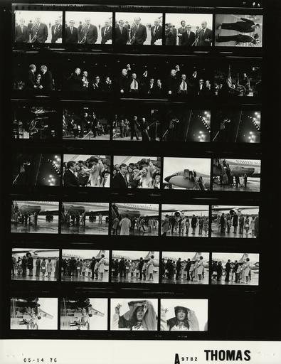 | Keywords: Ford A9782 NLGRF photo contact sheet (1976-05-14)(Gerald Ford Library).jpg White House Photographic Office WHPO is housed at the Gerald R Ford Presidential Library a branch of the National Archives and Records Administration NARA <br/><br/> This file is a 200 dpi photo contact sheet having images from roll of film A9782 of the August 9 1974 - January 20 1977 Gerald R Ford White House Photographic Office Series A0001-A9999 and B0001-B2886 photographs <br/><br/> The date on the photo contact sheet is the date the roll of film was processed not necessarily the date the photographs were taken See table below for additional details 1976-05-14 Gerald R Ford Presidential Library Image http //www fordlibrarymuseum gov/library/whphotos/A9782_NLGRF jpg A9782_NLGRF jpg from http //www fordlibrarymuseum gov/library/whphotos/19760514whpo pdf White House Photographs May 14 1976 of the http //www fordlibrarymuseum gov/Library/whphotos/whpo asp White House Photographic Collection page White House Photographic Office WHPO - Thomas PD-USGov Institution Institution Gerald R Ford Presidential Library Table wikitable sortable + Photo contact sheet A9782 U S President Ford Administration Gerald R Ford Library Frame s Tone Subject proper Subject generic Names Geographic Location Photographer Date - 3A-6A BW Primary Campaign Trip to Tennessee; Press Q A; US Senator and Representative from Tennessee TN standing on tarmac GRF at microphone GRF Sen Howard Baker Rep James Quillen Bristol TN Tri-City Airport Thomas 1976-05-14 - 7A BW Primary Campaign Trip to Tennessee-Chief of Staff Cheney and Consultant Schneider standing on tarmac Cheney holding cane Cheney Don Penny Schneider Bristol TN Tri-City Airport Thomas 1976-05-14 - 8A-15A BW Primary Campaign Trip to Tennessee; Campaign Rally; US Senator and Representative from Tennessee TN ; Republican County Chairman Williams standing onstage applauding cheering handshaking; hand over heart; Pledge of Allegiance GRF Sen Howard Baker Rep James Quillen Ed Williams III Secret Service Girl Scouts Johnson City TN Freedom Hall Convention Center Thomas 1976-05-14 - 16A-18A BW Primary Campaign Trip to Tennessee-Campaign Rally-GRF Remarks GRF at podium lit in a dark room GRF Johnson City TN Freedom Hall Convention Center Thomas 1976-05-14 - 19A-20A BW Primary Campaign Trip to Tennessee; Airport Departure; US Senator from Tennessee TN handshaking talking laughing Sen Howard Baker Crowd Bristol TN Tri-City Airport Thomas 1976-05-14 - 21A BW Primary Campaign Trip to Tennessee-Airport Departure; waving waving from top steps from Air Force One GRF Bristol TN Tri-City Airport Thomas 1976-05-14 - 22A-34A BW Primary Campaign Trip to Tennessee; Airport Arrival; US Senator and Representative from Tennessee TN ; Former Governor of Tennessee Winfield Dunn descending ramp from Air Force One handshaking with greeters on tarmac GRF Sen Mrs Howard Baker Winfield Dunn Rep James Quillen; Mr Mrs Edward Boldt Mr Mrs Norman Brewer Secret Service Bristol TN Tri-City Airport Thomas 1976-05-14 - 35A-36A BW Primary Campaign Trip to Tennessee-Airport Arrival coat over head rain holding paper and pencil for GRF autograph Unidentified Young Woman in Crowd Bristol TN Tri-City Airport Thomas 1976-05-14 Gerald R Ford Presidential Library and Museum-cooperation PD-USGov Contact sheets by the Ford White House May 1976 Winfield Dunn 1976 in Tennessee Gerald Ford in 1976 Rain in Tennessee |