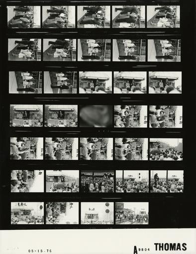 | Keywords: Ford A9804 NLGRF photo contact sheet (1976-05-15)(Gerald Ford Library).jpg White House Photographic Office WHPO is housed at the Gerald R Ford Presidential Library a branch of the National Archives and Records Administration NARA <br/><br/> This file is a 200 dpi photo contact sheet having images from roll of film A9804 of the August 9 1974 - January 20 1977 Gerald R Ford White House Photographic Office Series A0001-A9999 and B0001-B2886 photographs <br/><br/> The date on the photo contact sheet is the date the roll of film was processed not necessarily the date the photographs were taken See table below for additional details 1976-05-15 Gerald R Ford Presidential Library Image http //www fordlibrarymuseum gov/library/whphotos/A9804_NLGRF jpg A9804_NLGRF jpg from http //www fordlibrarymuseum gov/library/whphotos/19760515whpo pdf White House Photographs May 15 1976 of the http //www fordlibrarymuseum gov/Library/whphotos/whpo asp White House Photographic Collection page White House Photographic Office WHPO - Thomas PD-USGov Institution Institution Gerald R Ford Presidential Library Table wikitable sortable + Photo contact sheet A9804 U S President Ford Administration Gerald R Ford Library Frame s Tone Subject proper Subject generic Names Geographic Location Photographer Date - 3A-14A BW Primary Campaign Whistle-Stop Tour of Michigan-Hotel Departure standing handshaking outside in front of motel GRF Police Men Women Children Flint MI Holiday Inn Thomas 1976-05-15 - 15A-36A BW Primary Campaign Whistle-Stop Tour of Michigan; Durand Stop-By; GRF Remarks; Michigan State PFC Committee Chairman Fletcher Rep Party 7th Congressional District Chairman Laro; US Representative from Michigan MI GRF/BF/ on caboose crowd standing below; GRF remarks; GRF/BF waving from caboose; others on caboose; Kennerly in doorway; 'Welcome to Durand sign; train departing GRF Betty Ford Rep Elford Cederberg Crowd Media Secret Service; Kennerly; Peter Fletcher David Yaro Durand MI Train Station Thomas 1976-05-15 Gerald R Ford Presidential Library and Museum-cooperation PD-USGov Contact sheets by the Ford White House May 1976 |