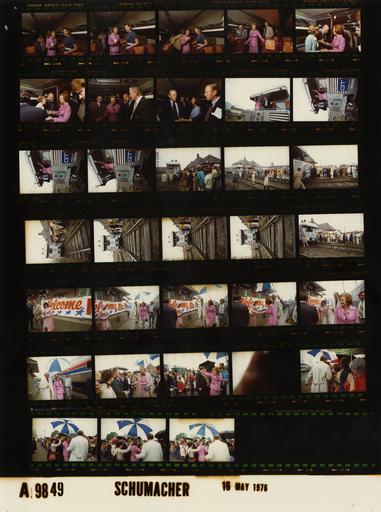 | Keywords: Ford A9849 NLGRF photo contact sheet (1976-05-15)(Gerald Ford Library).jpg White House Photographic Office WHPO is housed at the Gerald R Ford Presidential Library a branch of the National Archives and Records Administration NARA <br/><br/> This file is a 200 dpi photo contact sheet having images from roll of film A9849 of the August 9 1974 - January 20 1977 Gerald R Ford White House Photographic Office Series A0001-A9999 and B0001-B2886 photographs <br/><br/> The date on the photo contact sheet is the date the roll of film was processed not necessarily the date the photographs were taken See table below for additional details 1976-05-15 Gerald R Ford Presidential Library Image http //www fordlibrarymuseum gov/library/whphotos/A9849_NLGRF jpg A9849_NLGRF jpg from http //www fordlibrarymuseum gov/library/whphotos/19760515whpo pdf White House Photographs May 15 1976 of the http //www fordlibrarymuseum gov/Library/whphotos/whpo asp White House Photographic Collection page White House Photographic Office WHPO - Schumacher PD-USGov Institution Institution Gerald R Ford Presidential Library Table wikitable sortable + Photo contact sheet A9849 U S President Ford Administration Gerald R Ford Library Frame s Tone Subject proper Subject generic Names Geographic Location Photographer Date - 2A-9A Color Primary Campaign Whistle-Stop Tour of Michigan-Aboard Presidential Express BF standing greeting passengers; GRF handshaking; all not in every frame Betty Ford Others Secret Service Nessen GRF O'Donnell enroute to Lansing MI Aboard Train-Presidential Express Schumacher 1976-05-15 - 10A-34A Color Primary Campaign Whistle-Stop Tour of Michigan-Presidential Express Arrives Lansing-GRF Remarks standing on caboose waving; USSS and crowd on ground; GRF standing at microphone BF walking on ground handshaking at rope; umbrellas; frame 30A blank Betty Ford GRF Secret Service Crowd Lansing MI North Lansing Train Station Schumacher 1976-05-15 Gerald R Ford Presidential Library and Museum-cooperation PD-USGov Contact sheets by the Ford White House May 1976 |