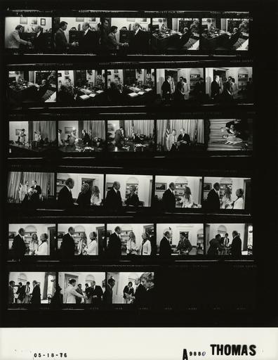 Keywords: Ford A9880 NLGRF photo contact sheet (1976-05-18)(Gerald Ford Library).jpg White House Photographic Office WHPO is housed at the Gerald R Ford Presidential Library a branch of the National Archives and Records Administration NARA <br/><br/> This file is a 200 dpi photo contact sheet having images from roll of film A9880 of the August 9 1974 - January 20 1977 Gerald R Ford White House Photographic Office Series A0001-A9999 and B0001-B2886 photographs <br/><br/> The date on the photo contact sheet is the date the roll of film was processed not necessarily the date the photographs were taken See table below for additional details 1976-05-18 Gerald R Ford Presidential Library Image http //www fordlibrarymuseum gov/library/whphotos/A9880_NLGRF jpg A9880_NLGRF jpg from http //www fordlibrarymuseum gov/library/whphotos/19760518whpo pdf White House Photographs May 18 1976 of the http //www fordlibrarymuseum gov/Library/whphotos/whpo asp White House Photographic Collection page White House Photographic Office WHPO - Thomas PD-USGov Institution Institution Gerald R Ford Presidential Library Table wikitable sortable + Photo contact sheet A9880 U S President Ford Administration Gerald R Ford Library Frame s Tone Subject proper Subject generic Names Geographic Location Photographer Date - 1-8 BW Interview for TV Broadcast with Little Rock Arkansas Network Anchormen and New Director; KTHV-TV anchor Lawrence CBS ; KATV-TV anchor DeBrine ABC ; KARK-TV news director Long NBC ; Television Advisor Mead entering handshaking; seated at desk and chairs; Mead standing in doorway GRF Robert T Lawrence Fred DeBrine Gary H Long Robert A Mead President's Private Office Thomas 1976-05-18 - 9-13 BW Interview for TV Broadcast with Little Rock Arkansas Network Anchormen and New Director; KTHV-TV anchor Lawrence CBS ; KATV-TV anchor DeBrine ABC ; KARK-TV news director Long NBC ; Television Advisor Mead entering; photo op handshaking at desk; Mead in white suit GRF Robert T Lawrence Fred DeBrine Gary H Long Robert A Mead John G Carlson Oval Office Thomas 1976-05-18 - 14-16 BW Unidentified Oval Office Visitor from Arkansas standing holding book with trees and RKON on cover; man in striped suit GRF Unidentified Man Oval Office Thomas 1976-05-18 - 17-28 BW Unidentified Oval Office Visitors; GRF's Personal Assistant Leonard standing handshaking talking; Leonard wearing glasses in frames 20A-23A; men holding items and camera; wearing Visitor Passes GRF Mildred V Leonard Unidentified women Men Oval Office Thomas 1976-05-18 Gerald R Ford Presidential Library and Museum-cooperation PD-USGov Contact sheets by the Ford White House May 1976 |