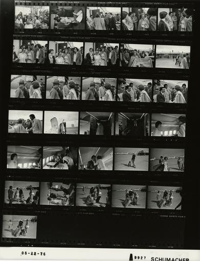 Keywords: Ford A9927 NLGRF photo contact sheet (1976-05-22)(Gerald Ford Library).jpg White House Photographic Office WHPO is housed at the Gerald R Ford Presidential Library a branch of the National Archives and Records Administration NARA <br/><br/> This file is a 200 dpi photo contact sheet having images from roll of film A9927 of the August 9 1974 - January 20 1977 Gerald R Ford White House Photographic Office Series A0001-A9999 and B0001-B2886 photographs <br/><br/> The date on the photo contact sheet is the date the roll of film was processed not necessarily the date the photographs were taken See table below for additional details 1976-05-22 Gerald R Ford Presidential Library Image http //www fordlibrarymuseum gov/library/whphotos/A9927_NLGRF jpg A9927_NLGRF jpg from http //www fordlibrarymuseum gov/library/whphotos/19760522whpo pdf White House Photographs May 22 1976 of the http //www fordlibrarymuseum gov/Library/whphotos/whpo asp White House Photographic Collection page White House Photographic Office WHPO - Schumacher PD-USGov Institution Institution Gerald R Ford Presidential Library Table wikitable sortable + Photo contact sheet A9927 U S President Ford Administration Gerald R Ford Library Frame s Tone Subject proper Subject generic Names Geographic Location Photographer Date - 1A BW First Lady's Trip to Bennington College for Arts Center Dedication; Box Lunch Picnic - Bennington Vermont seated BF eating all watching Betty Ford Students faculty friends Bennington VT Bennington College - Dickson Science Building -Courtyard Schumacher 1976-05-22 - 2A-9A BW First Lady's Trip to Bennington College for Arts Center Dedication; Box Lunch Picnic; Departing - Bennington Vermont standing handshaking posing; Sorum 3A Matson 4A 5A BF entering limo Betty Ford Students Secret Service Peter Sorum Patti Matson Bennington VT Bennington College - Dickson Science Building -Courtyard Schumacher 1976-05-22 - 9A-17A BW First Lady Trip to Bennington College for Arts Center Dedication-Airport Departure BF on tarmac waving handshaking; waving from top of ramp Betty Ford Police Others Albany NY Albany County Airport Schumacher 1976-05-22 - 18A-23A BW First Lady Trip to Bennington College for Arts Center Dedication-Return to Washington aboard Air Force One man standing BF talking to woman bending to talk to Matson BF embracing man Betty Ford Patti Matson; Porembka Schumacher O'Brien Ball Bay Dalton Enroute to Andrews Air Force Base Air Force One Schumacher 1976-05-22 - 24A-31A BW First Lady Trip to Bennington College for Arts Center Dedication-Return to Washington aboard Air Force One; Golden Retriever; Pets Susan on tarmac with dog/s; Susan kissing BF; all standing with dogs Susan Ford Liberty's Puppies Betty Ford Unidentified women Secret Service Andrews Air Force Base MD Andrews Air Force Base Schumacher 1976-05-22 Gerald R Ford Presidential Library and Museum-cooperation PD-USGov Contact sheets by the Ford White House May 1976 |
