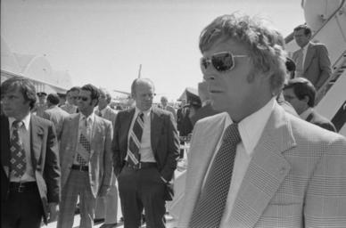 Keywords: Ford at McClellan 5 Sept 1975 A6311-09.jpg McClellan Air Force Base 7 miles northeast of Sacramento California at 3 10 PM<ref> Citation White House September 5 1975 Daily Diary of President Gerald R Ford September 45 1975 President's Daily Diary Collection Box 77 at the Gerald R Ford Presidential Library 12 http //www fordlibrarymuseum gov/library/document/0036/pdd750905 pdf November 26 2012 </ref> on September 5 1975 after the 10 04 am assassination attempt by Lynette Squeaky Fromme on his life President Ford waits to board Air Force One and return to Washington Also shown are Secret Service agents including Larry Buendorf in foreground with sunglasses and Chief of Staff Don Rumsfeld descending ramp of plane 1975-09-05 Gerald R Ford Presidential Library Image http //www fordlibrarymuseum gov/images/avproj/pop-ups/A6311-09 html A6311-09 from http //www fordlibrarymuseum gov/avproj/assassinations asp Fordlibrarymuseum gov Assassination Attempts September 1975 photo essay David Hume Kennerly PD-USGov Institution Institution Gerald R Ford Presidential Museum References Reflist Gerald R Ford Presidential Library and Museum-cooperation PD-USGov Ford assassination attempt in Sacramento Gerald Ford in 1975 Photographs at the Gerald R Ford Presidential Library and Museum Larry Buendorf |