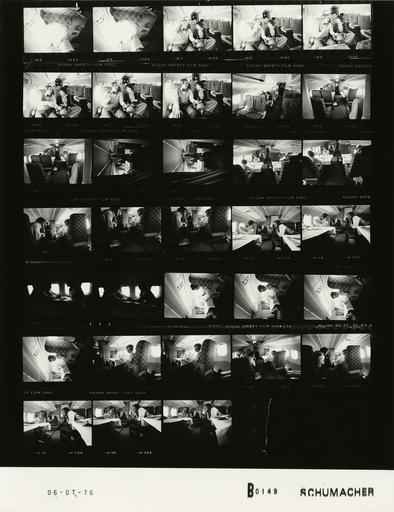 Keywords: Ford B0149 NLGRF photo contact sheet (1976-06-07)(Gerald Ford Library).jpg White House Photographic Office WHPO is housed at the Gerald R Ford Presidential Library a branch of the National Archives and Records Administration NARA <br/><br/> This file is a 200 dpi photo contact sheet having images from roll of film B0149 of the August 9 1974 - January 20 1977 Gerald R Ford White House Photographic Office Series A0001-A9999 and B0001-B2886 photographs <br/><br/> The date on the photo contact sheet is the date the roll of film was processed not necessarily the date the photographs were taken See table below for additional details 1976-06-07 Gerald R Ford Presidential Library Image http //www fordlibrarymuseum gov/library/whphotos/B0149_NLGRF jpg B0149_NLGRF jpg from http //www fordlibrarymuseum gov/library/whphotos/19760607whpo pdf White House Photographs June 7 1976 of the http //www fordlibrarymuseum gov/Library/whphotos/whpo asp White House Photographic Collection page White House Photographic Office WHPO - Schumacher PD-USGov Institution Institution Gerald R Ford Presidential Library Table wikitable sortable + Photo contact sheet B0149 U S President Ford Administration Gerald R Ford Library Frame s Tone Subject proper Subject generic Names Geographic Location Photographer Date - 5-6 BW First Lady's Trip to Michigan -Flight from California to Grand Rapids Michigan seated face to face; BF's back to camera; overexposed Betty Ford Unidentified Woman C-9 Convair Aircraft Schumacher 1976-06-07 - 7-12 B First Lady's Trip to Michigan -Flight from California to Grand Rapids Michigan seated talking; reporter holding microphone Weidenfeld Unidentified Reporter C-9 Convair Aircraft Schumacher 1976-06-07 - 13 B First Lady's Trip to Michigan -Flight from California to Grand Rapids Michigan seated talking; long shot showing interior of plane Weidenfeld Unidentified Reporter C-9 Convair Aircraft Schumacher 1976-06-07 - 14-15 B First Lady's Trip to Michigan -Flight from California to Grand Rapids Michigan crew in background; door ro cockoit open; others seated backs to camera; long shots showing interior of C-9 Convair Aircraft Flight Crew; Others C-9 Convair Aircraft Schumacher 1976-06-07 - 16-19 BW First Lady's Trip to Michigan -Flight from California to Grand Rapids Michigan BF seated in foreground reading newspaper; attendant walking down aisle in frame 19; long shots toward rear of C-9 Convair Aircraft Betty Ford; Flight Attendant C-9 Convair Aircraft Schumacher 1976-06-07 - 30-32 BW First Lady's Trip to Michigan -Flight from California to Grand Rapids Michigan BF seated holding newspaper back to camera talking to man across aisle of C-9 Convair Aircraft; attendant standing in background Betty Ford Unidentified Man; Flight Attendant C-9 Convair Aircraft Schumacher 1976-06-07 - 33-34 BW First Lady's Trip to Michigan -Flight from California to Grand Rapids Michigan BF seated holding newspaper talking to man across aisle of C-9 Convair Aircraft; long shot toward rear of plane Betty Ford Unidentified Man C-9 Convair Aircraft Schumacher 1976-06-07 - 20-21 B First Lady's Trip to Michigan -Flight from California to Grand Rapids Michigan seated face to face across table; too dark to make out faces Unidentified Man Unidentified Woman C-9 Convair Aircraft Schumacher 1976-06-07 - 22-27 BW First Lady's Trip to Michigan -Flight from California to Grand Rapids Michigan seated smiling; BF turning back toward camera Betty Ford Unidentified Woman C-9 Convair Aircraft Schumacher 1976-06-07 - 28-29 BW First Lady's Trip to Michigan -Flight from California to Grand Rapids Michigan BF seated holding newspaper back to camera talking to man across aisle of C-9 Convair Aircraft; attendant standing in background Betty Ford Unidentified Man; Flight Attendant C-9 Convair Aircraft Schumacher 1976-06-07 - 35-37 BW First Lady's Trip to Michigan -Flight from California to Grand Rapids Michigan BF seated holding newspaper talking to man across aisle of C-9 Convair Aircraft; shot toward rear of plane Betty Ford Unidentified Man C-9 Convair Aircraft Schumacher 1976-06-07 Gerald R Ford Presidential Library and Museum-cooperation PD-USGov Contact sheets by the Ford White House June 1976 |