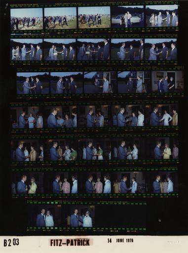 | Keywords: Ford B0203 NLGRF photo contact sheet (1976-06-11)(Gerald Ford Library).jpg White House Photographic Office WHPO is housed at the Gerald R Ford Presidential Library a branch of the National Archives and Records Administration NARA <br/><br/> This file is a 200 dpi photo contact sheet having images from roll of film B0203 of the August 9 1974 - January 20 1977 Gerald R Ford White House Photographic Office Series A0001-A9999 and B0001-B2886 photographs <br/><br/> The date on the photo contact sheet is the date the roll of film was processed not necessarily the date the photographs were taken See table below for additional details 1976-06-11 Gerald R Ford Presidential Library Image http //www fordlibrarymuseum gov/library/whphotos/B0203_NLGRF jpg B0203_NLGRF jpg from http //www fordlibrarymuseum gov/library/whphotos/19760611whpo pdf White House Photographs June 11 1976 of the http //www fordlibrarymuseum gov/Library/whphotos/whpo asp White House Photographic Collection page White House Photographic Office WHPO - Fitz-Patrick PD-USGov Institution Institution Gerald R Ford Presidential Library Table wikitable sortable + Photo contact sheet B0203 U S President Ford Administration Gerald R Ford Library Frame s Tone Subject proper Subject generic Names Geographic Location Photographer Date - 4-6 Color Campaign Trip to Missouri to Meet Delegates Participating in the Missouri State Republican Convention - Springfield Missouri GRF and others walking across grassy open area; GRF waving; moving toward camera; crowd on either side of frame GRF O'Donnell Keiser Secret Service; Crowd Springfield MO Springfield Municipal Airport Fitz-Patrick 1976-06-11 - 7 Color Weekend Trip to Camp David -Prior to Departure via Helicopter for the White House BF stepping out of light colored limousine aide assisting; others in background; evening shot Betty Ford Marine Aide; Others Thurmont MD Camp David Helipad Fitz-Patrick 1976-06-13 - 8-11 Color Weekend Trip to Camp David -Prior to Departure via Helicopter for the White House handshaking saying goodbye; evening shots GRF Betty Ford Camp David staff; Others Thurmont MD Camp David -Helipad Fitz-Patrick 1976-06-13 - 12-15 Color Weekend Trip to Camp David -Prior to Departure via Helicopter for the White House handshaking saying goodbye; evening shots GRF Camp David staff; Others Thurmont MD Camp David -Helipad Fitz-Patrick 1976-06-13 - 16-17 Color Weekend Trip to Camp David -Prior to Departure via Helicopter for the White House handshaking saying goodbye; front of Marine One copter in background; evening shots GRF Army Sergeant Thurmont MD Camp David -Helipad Fitz-Patrick 1976-06-13 - 18 Color Women United for President Ford Reception - Board Members greeting handshaking standing talking GRF Betty Ford Unidentified Woman P Bailey C Booth P Curtis S Greenwald B Hemphill G Legitt R Lund J Macauley K Rinehart C Shank E Weed B Bellows Blue Room Fitz-Patrick 1976-06-13 - 19-29 Color Women United for President Ford Reception - Board Members greeting handshaking standing talking; all not in every frame GRF Unidentified women P Bailey C Booth P Curtis S Greenwald B Hemphill G Legitt R Lund J Macauley K Rinehart C Shank E Weed B Bellows Blue Room Fitz-Patrick 1976-06-13 - 30-31 Color Women United for President Ford Reception - Board Members; Chairman International Women's Year GRF talking to woman; Ruckelshaus waiting turn GRF Jill Ruckelshaus Unidentified Woman P Bailey C Booth P Curtis S Greenwald B Hemphill G Legitt R Lund J Macauley K Rinehart C Shank E Weed B Bellows Blue Room Fitz-Patrick 1976-06-13 - 32-33 Color Women United for President Ford Reception - Board Members; Chairman International Women's Year GRF talking to Ruckelshaus; others in background; all not in frame GRF Jill Ruckelshaus Unidentified women P Bailey C Booth P Curtis S Greenwald B Hemphill G Legitt R Lund J Macauley K Rinehart C Shank E Weed B Bellows Blue Room Fitz-Patrick 1976-06-13 - 34-35 Color Women United for President Ford Reception - Board Members; Chairman Women United for President Ford and Deputy Chairman for Special Voter Groups President Ford Committee PFC standing talking smiling posing GRF Elly Peterson Blue Room Fitz-Patrick 1976-06-13 Gerald R Ford Presidential Library and Museum-cooperation PD-USGov Contact sheets by the Ford White House June 1976 |