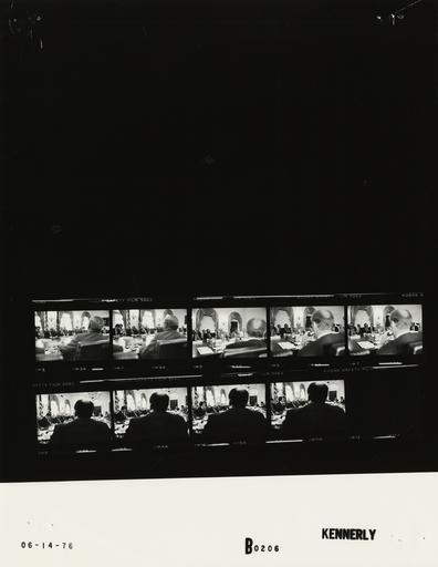 | Keywords: Ford B0206 NLGRF photo contact sheet (1976-06-14)(Gerald Ford Library).jpg White House Photographic Office WHPO is housed at the Gerald R Ford Presidential Library a branch of the National Archives and Records Administration NARA <br/><br/> This file is a 200 dpi photo contact sheet having images from roll of film B0206 of the August 9 1974 - January 20 1977 Gerald R Ford White House Photographic Office Series A0001-A9999 and B0001-B2886 photographs <br/><br/> The date on the photo contact sheet is the date the roll of film was processed not necessarily the date the photographs were taken See table below for additional details 1976-06-14 Gerald R Ford Presidential Library Image http //www fordlibrarymuseum gov/library/whphotos/B0206_NLGRF jpg B0206_NLGRF jpg from http //www fordlibrarymuseum gov/library/whphotos/19760614whpo pdf White House Photographs June 14 1976 of the http //www fordlibrarymuseum gov/Library/whphotos/whpo asp White House Photographic Collection page White House Photographic Office WHPO <br/> Creator David Hume Kennerly PD-USGov Institution Institution Gerald R Ford Presidential Library Table wikitable sortable + Photo contact sheet B0206 U S President Ford Administration Gerald R Ford Library Frame s Tone Subject proper Subject generic Names Geographic Location Photographer Date - 3A-4A B Meeting to Discuss School Desegregation with Leaders of the Civil Rights Community - Chairman Leadership Conference on Civil Rights seated at table; listening to Rauh seated across table; back of Rauh's head in foreground Roy Wilkins GRF Levi Cannon; Joseph Rauh Cabinet Room Kennerly 1976-06-14 - 5A-7A B Meeting to Discuss School Desegregation with Leaders of the Civil Rights Community - Counsel Leadership Conference on Civil Rights seated at table Rauh speaking others smiling; back of GRF's head in foreground GRF Joseph Rauh Unidentified Man A Aronson A Biemiller D Brody M Caplan J Greenberg W Pollard R Warden C Mitchell B Rustin Cabinet Room Kennerly 1976-06-14 - 8A-11A B Meeting to Discuss School Desegregation with Leaders of the Civil Rights Community - Chairman Leadership Conference on Civil Rights seated at table; listening to someone across table not seen ; back of man's head in foreground Roy Wilkins GRF Levi Cannon; Unidentified Man W Pollard R Warden N Jones C Mitchell B Rustin Cabinet Room Kennerly 1976-06-14 Gerald R Ford Presidential Library and Museum-cooperation PD-USGov Contact sheets by the Ford White House June 1976 Roy Wilkins ¢ Photographs by David Hume Kennerly from 1976 |