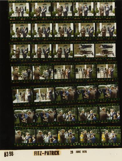 | Keywords: Ford B0398 NLGRF photo contact sheet (1976-06-29)(Gerald Ford Library).jpg White House Photographic Office WHPO is housed at the Gerald R Ford Presidential Library a branch of the National Archives and Records Administration NARA <br/><br/> This file is a 200 dpi photo contact sheet having images from roll of film B0398 of the August 9 1974 - January 20 1977 Gerald R Ford White House Photographic Office Series A0001-A9999 and B0001-B2886 photographs <br/><br/> The date on the photo contact sheet is the date the roll of film was processed not necessarily the date the photographs were taken See table below for additional details 1976-06-29 Gerald R Ford Presidential Library Image http //www fordlibrarymuseum gov/library/whphotos/B0398_NLGRF jpg B0398_NLGRF jpg from http //www fordlibrarymuseum gov/library/whphotos/19760629whpo pdf White House Photographs June 29 1976 of the http //www fordlibrarymuseum gov/Library/whphotos/whpo asp White House Photographic Collection page White House Photographic Office WHPO - Fitz-Patrick PD-USGov Institution Institution Gerald R Ford Presidential Library Table wikitable sortable + Photo contact sheet B0398 U S President Ford Administration Gerald R Ford Library Frame s Tone Subject proper Subject generic Names Geographic Location Photographer Date - 2-8 Color Bicentennial Event - Meeting with Board of Directors of American Revolution Bicentennial Administration ARBA Advisory Council and Federal Agency Bicentennial Task Force - Administrator ARBA standing near microphone talking; Warner holding documents GRF John Warner Rose Garden Fitz-Patrick 1976-06-29 - 9-16 Color Bicentennial Event - Meeting with Board of Directors of American Revolution Bicentennial Administration ARBA Advisory Council and Federal Agency Bicentennial Task Force - Administrator ARBA GRF speaking into microphone GRF John Warner Rose Garden Fitz-Patrick 1976-06-29 - 17-18 Color Bicentennial Event - Meeting with Board of Directors of American Revolution Bicentennial Administration ARBA Advisory Council and Federal Agency Bicentennial Task Force greeting handshaking GRF Unidentified Man Unidentified Woman Rose Garden Fitz-Patrick 1976-06-29 - 19-21 Color Bicentennial Event - Meeting with Board of Directors of American Revolution Bicentennial Administration ARBA Advisory Council and Federal Agency Bicentennial Task Force - Administrator ARBA standing near microphone talking GRF John Warner Unidentified Man Unidentified Woman Rose Garden Fitz-Patrick 1976-06-29 - 22-23 Color Bicentennial Event - Meeting with Board of Directors of American Revolution Bicentennial Administration ARBA Advisory Council and Federal Agency Bicentennial Task Force - Administrator ARBA 2nd man standing near microphone talking GRF John Warner Unidentified Man Unidentified Woman; Unidentified Man Rose Garden Fitz-Patrick 1976-06-29 - 24-36 Color Bicentennial Event - Following Meeting with Board of Directors of American Revolution Bicentennial Administration ARBA Advisory Council and Federal Agency Bicentennial Task Force greeting handshaking standing talking; various angles and distances; all not in every frame GRF Crowd Rose Garden Fitz-Patrick 1976-06-29 Gerald R Ford Presidential Library and Museum-cooperation PD-USGov Contact sheets by the Ford White House June 1976 |