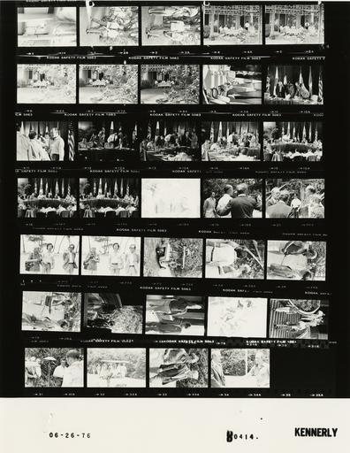 | Keywords: Ford B0414 NLGRF photo contact sheet (1976-06-28)(Gerald Ford Library).jpg White House Photographic Office WHPO is housed at the Gerald R Ford Presidential Library a branch of the National Archives and Records Administration NARA <br/><br/> This file is a 200 dpi photo contact sheet having images from roll of film B0414 of the August 9 1974 - January 20 1977 Gerald R Ford White House Photographic Office Series A0001-A9999 and B0001-B2886 photographs <br/><br/> The date on the photo contact sheet is the date the roll of film was processed not necessarily the date the photographs were taken See table below for additional details 1976-06-28 Gerald R Ford Presidential Library Image http //www fordlibrarymuseum gov/library/whphotos/B0414_NLGRF jpg B0414_NLGRF jpg from http //www fordlibrarymuseum gov/library/whphotos/19760628whpo pdf White House Photographs June 28 1976 of the http //www fordlibrarymuseum gov/Library/whphotos/whpo asp White House Photographic Collection page White House Photographic Office WHPO <br/> Creator David Hume Kennerly PD-USGov Institution Institution Gerald R Ford Presidential Library Table wikitable sortable + Photo contact sheet B0414 U S President Ford Administration Gerald R Ford Library Frame s Tone Subject proper Subject generic Names Geographic Location Photographer Date - 1 BW Trip to Puerto Rico - International Economic Summit - Residence of the US Delegation standing on porch; long shot through palm trees Kissinger Dorado Beach Puerto Rico Dorado Beach Hotel - Villa 17 Kennerly 1976-06-28 - 2 BW Trip to Puerto Rico - International Economic Summit - Prior to Breakfast with the President and Minister of Foreign Affairs of France greeting handshaking GRF Kissinger Giscard d'Estaing Dorado Beach Puerto Rico Dorado Beach Hotel - Villa 17 Kennerly 1976-06-28 - 3 BW Trip to Puerto Rico - International Economic Summit - Prior to Breakfast with the President and Minister of Foreign Affairs of France standing talking GRF Kissinger Giscard d'Estaing Sauvagnargues Dorado Beach Puerto Rico Dorado Beach Hotel - Lawn Outside Villa 17 Kennerly 1976-06-28 - 4-8 BW Trip to Puerto Rico - International Economic Summit - Breakfast with the President and Minister of Foreign Affairs of France seated around table; various distances; palm trees in foreground in some frames GRF Kissinger Giscard d'Estaing Sauvagnargues Kissinger Dorado Beach Puerto Rico Dorado Beach Hotel - Villa 17 Kennerly 1976-06-28 - 9 BW Trip to Puerto Rico - Prior to 2nd Session International Economic Summit seated at table; waiting for session to begin Simon Dorado Beach Puerto Rico Dorado Beach Hotel - Salon del Mar Kennerly 1976-06-28 - 10 BW Trip to Puerto Rico - Prior to 2nd Session International Economic Summit standing at table looking down at documents; man's faced covered by his hand GRF Simon Unidentified Man Dorado Beach Puerto Rico Dorado Beach Hotel - Salon del Mar Kennerly 1976-06-28 - 11 BW Trip to Puerto Rico - Prior to 2nd Session International Economic Summit; President and Minister of Foreign Affairs of France standing talking laughing; others in background Giscard d'Estaing Sauvagnargues; Others Dorado Beach Puerto Rico Dorado Beach Hotel - Salon del Mar Kennerly 1976-06-28 - 12 BW Trip to Puerto Rico - Prior to 2nd Session International Economic Summit; President of France GRF and Giscard seated separately at table; others leaning forward talking GRF Greenspan Giscard d'Estaing; Others Dorado Beach Puerto Rico Dorado Beach Hotel - Salon del Mar Kennerly 1976-06-28 - 13-14 BW Trip to Puerto Rico - Prior to 2nd Session International Economic Summit; President and Minister of Foreign Affairs of France GRF and Giscard seated separately at table; others leaning forward talking GRF Greenspan Simon; Giscard d'Estaing Sauvagnargues; Others Dorado Beach Puerto Rico Dorado Beach Hotel - Salon del Mar Kennerly 1976-06-28 - 15-17 BW Trip to Puerto Rico - 3rd Session International Economic Summit -Delegations from French Republic Canada Federal Republic of Germany FRG West Germany Italian Republic Japan the United Kingdom United States seated around large circular table; various angles and distances; all not in every frame GRF Simon Kissinger; Giscard d'Estaing Sauvagnargues Fourcade; Trudeau McEachen Macdonald; Schmidt Genscher Apel; Moro Rumor Columbo; Miki Miyazawa Ohira; Callaghan Crosland Healey; staff Dorado Beach Puerto Rico Dorado Beach Hotel - Salon del Mar Kennerly 1976-06-28 - 18-19 BW Trip to Puerto Rico - International Economic Summit; President of France GRF and Giscard standing talking backs to camera; GRF's left arm on Giscard's shoulder; others in background GRF Giscard d'Estaing; Others Dorado Beach Puerto Rico Dorado Beach Hotel - Grounds Kennerly 1976-06-28 - 20 BW Trip to Puerto Rico - International Economic Summit; President of France; Son of Henry Kissinger standing talking backs to camera GRF Giscard d'Estaing Kissinger David Kissinger Dorado Beach Puerto Rico Dorado Beach Hotel - Grounds Kennerly 1976-06-28 - 21-22 BW Trip to Puerto Rico - International Economic Summit standing talking; 1 holding cameras; trees and ocean in background Three Japanese Media Dorado Beach Puerto Rico Dorado Beach Hotel - Lawn Kennerly 1976-06-28 - 23 BW Trip to Puerto Rico - International Economic Summit; Chancellor Federal Republic of Germany FRG West Germany riding in golf cart Schmidt driving Schmidt Unidentified Man Dorado Beach Puerto Rico Dorado Beach Hotel - Grounds Kennerly 1976-06-28 - 24-26 BW Trip to Puerto Rico - International Economic Summit; Prime Minister of Canada; Prime Minister of Japan standing talking; various angles and distances Pierre Elliott Trudeau Takeo Miki Dorado Beach Puerto Rico Dorado Beach Hotel - Grounds Kennerly 1976-06-28 - 27-28 BW Trip to Puerto Rico - International Economic Summit; Prime Minister of Canada; Prime Minister of Japan walking talking; ascending stairs in 1st frame Pierre Elliott Trudeau Takeo Miki Dorado Beach Puerto Rico Dorado Beach 
