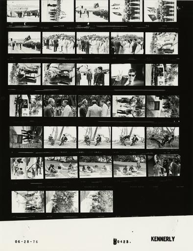 | Keywords: Ford B0423 NLGRF photo contact sheet (1976-06-26)(Gerald Ford Library).jpg White House Photographic Office WHPO is housed at the Gerald R Ford Presidential Library a branch of the National Archives and Records Administration NARA <br/><br/> This file is a 200 dpi photo contact sheet having images from roll of film B0423 of the August 9 1974 - January 20 1977 Gerald R Ford White House Photographic Office Series A0001-A9999 and B0001-B2886 photographs <br/><br/> The date on the photo contact sheet is the date the roll of film was processed not necessarily the date the photographs were taken See table below for additional details 1976-06-26 Gerald R Ford Presidential Library Image http //www fordlibrarymuseum gov/library/whphotos/B0423_NLGRF jpg B0423_NLGRF jpg from http //www fordlibrarymuseum gov/library/whphotos/19760626whpo pdf White House Photographs June 26 1976 of the http //www fordlibrarymuseum gov/Library/whphotos/whpo asp White House Photographic Collection page White House Photographic Office WHPO <br/> Creator David Hume Kennerly PD-USGov Institution Institution Gerald R Ford Presidential Library Table wikitable sortable + Photo contact sheet B0423 U S President Ford Administration Gerald R Ford Library Frame s Tone Subject proper Subject generic Names Geographic Location Photographer Date - 1A-6A BW Trip to Puerto Rico; Arrival in San Juan for the International Economic Summit; Governor of Puerto Rico GRF and Colon inspecting Guard; various angles and distances; all not in every frame; Air Force One in background in some frames GRF Gov Rafael Hernandez Colon Honor Guard Others San Juan Puerto Rico Puerto Rico International Airport Kennerly 1976-06-26 - 7A-12A BW Trip to Puerto Rico; Arrival in San Juan for the International Economic Summit; Governor of Puerto Rico greeting handshaking in receiving line; various distances; all not in every frame GRF Gov Rafael Hernandez Colon Others San Juan Puerto Rico Puerto Rico International Airport Kennerly 1976-06-26 - 13A BW Trip to Puerto Rico; Arrival in San Juan for the International Economic Summit; Governor of Puerto Rico GRF and Colon walking; military and Air Force One in background GRF Gov Rafael Hernandez Colon Military San Juan Puerto Rico Puerto Rico International Airport Kennerly 1976-06-26 - 14A BW Trip to Puerto Rico; Flight from San Juan to Dorado Beach for the International Economic Summit seated wearing sunglasses making V sign with right hand O'Donnell Puerto Rico Marine One Kennerly 1976-06-26 - 15A-16A BW Trip to Puerto Rico - Arrival at Dorado Beach Hotel for the International Economic Summit stepping from Huey Helicopter; Barrett in uniform carrying football GRF Barrett Dorado Beach Puerto Rico Dorado Beach Hotel - Grounds Kennerly 1976-06-26 - 17A-18A BW Trip to Puerto Rico - Arrival at Dorado Beach Hotel for the International Economic Summit - President Rockresorts Inc ; VP and General Manager and Executive Assistant GM Dorado Beach Properties greeting handshaking standing talking; media and palm trees in background; all not in both frames GRF Richard Holtzman Bernard F Iliff Perry Sorensen Dorado Beach Puerto Rico Dorado Beach Hotel Kennerly 1976-06-26 - 19A BW Trip to Puerto Rico - Arrival at Dorado Beach Hotel for the International Economic Summit - Governor of Puerto Rico; Residence of the US Delegation at the Dorado Beach Hotel walking toward Villa 17 not seen waving GRF Gov Rafael Hernandez Colon Dorado Beach Puerto Rico Dorado Beach Hotel - Grounds Kennerly 1976-06-26 - 20A-21A BW Trip to Puerto Rico - Arrival at Dorado Beach Hotel for the International Economic Summit - Governor of Puerto Rico; Residence of the US Delegation at the Dorado Beach Hotel walking toward Villa 17 not seen talking; sign reading United States in foreground GRF Gov Rafael Hernandez Colon Dorado Beach Puerto Rico Dorado Beach Hotel - Grounds Kennerly 1976-06-26 - 22A-25A BW Trip to Puerto Rico - Prior to the Arrival of Others Heads of State for the International Economic Summit -Governor of Puerto Rico GRF and Colon seated on lawn chairs talking; man in last frame only back to camera; waiter serving drinks in 3rd frame; trees and Atlantic Ocean in background GRF Gov Rafael Hernandez Colon Unidentified Man; Waiter Dorado Beach Puerto Rico Dorado Beach Hotel - Lawn Kennerly 1976-06-26 - 26A-29A BW Trip to Puerto Rico - Prior to the Arrival of Others Heads of State for the International Economic Summit -Under Secretary of the Treasury for Monetary Affairs seated talking; all wearing bathing suits; GRF walking away in last frame GRF Simon Unidentified Man Edwin Yeo III Dorado Beach Puerto Rico Dorado Beach Hotel -Swimming Pool Kennerly 1976-06-26 - 30A BW Trip to Puerto Rico - Prior to the Arrival of Others Heads of State for the International Economic Summit standing talking; GRF wearing Hawaiian shirt; curved stairway in background GRF Unidentified Man Dorado Beach Puerto Rico Dorado Beach Hotel Kennerly 1976-06-26 - 31A-33A BW Trip to Puerto Rico - Recreational Time Off Prior to the International Economic Summit GRF walking wearing open shirt and bathing suit carrying shoes; man walking to GRF's right; Secret Service in background; various distances GRF Unidentified Man; Secret Service Dorado Beach Puerto Rico Dorado Beach Hotel - Grounds Kennerly 1976-06-26 Gerald R Ford Presidential Library and Museum-cooperation PD-USGov Contact sheets by the Ford White House June 1976 Photographs by David Hume Kennerly from 1976 Aloha shirts |