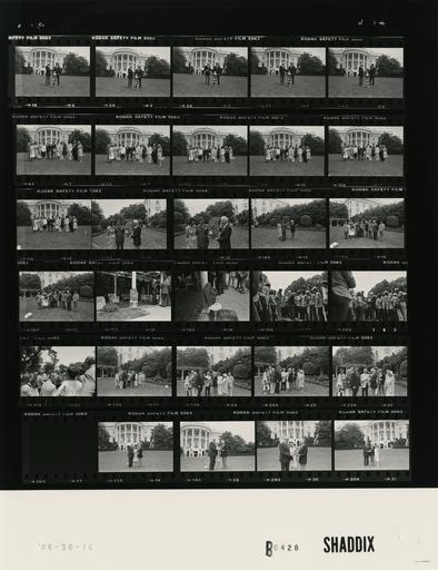 | Keywords: Ford B0428 NLGRF photo contact sheet (1976-06-30)(Gerald Ford Library).jpg White House Photographic Office WHPO is housed at the Gerald R Ford Presidential Library a branch of the National Archives and Records Administration NARA <br/><br/> This file is a 200 dpi photo contact sheet having images from roll of film B0428 of the August 9 1974 - January 20 1977 Gerald R Ford White House Photographic Office Series A0001-A9999 and B0001-B2886 photographs <br/><br/> The date on the photo contact sheet is the date the roll of film was processed not necessarily the date the photographs were taken See table below for additional details 1976-06-30 Gerald R Ford Presidential Library Image http //www fordlibrarymuseum gov/library/whphotos/B0428_NLGRF jpg B0428_NLGRF jpg from http //www fordlibrarymuseum gov/library/whphotos/19760630whpo pdf White House Photographs June 30 1976 of the http //www fordlibrarymuseum gov/Library/whphotos/whpo asp White House Photographic Collection page White House Photographic Office WHPO - Shaddix PD-USGov Institution Institution Gerald R Ford Presidential Library Table wikitable sortable + Photo contact sheet B0428 U S President Ford Administration Gerald R Ford Library Frame s Tone Subject proper Subject generic Names Geographic Location Photographer Date - 2-6 BW Bicentennial Gift Presentation standing posing by metal sculpture of a bird eagle ; White House and Truman Balcony in background Mitler Unidentified Man South Lawn Shaddix 1976-06-30 - 7-12 BW Bicentennial Gift Presentation standing posing by metal sculpture of a bird eagle ; White House and Truman Balcony in background Mitler Unidentified Group of Men Women South Lawn Shaddix 1976-06-30 - 13-15 BW Bicentennial Gift Presentation standing posing; Mitler holding wooden plaque with bell and words God Bless Our Country on it; White House in background Mitler Unidentified Air Force Officer Woman East Garden Jacqueline Kennedy Garden Shaddix 1976-06-30 - 16-17 BW Bicentennial Gift Presentation standing posing; Mitler holding wooden plaque with bell and words God Bless Our Country on it; White House in background Mitler Unidentified Air Force Officer Unidentified Group of Men Women East Garden Jacqueline Kennedy Garden Shaddix 1976-06-30 - 18-19 BW Bicentennial Gift Presentation wooden plaque with bell and words God Bless Our Country on it sitting on patio chair; two angles and distances East Garden Jacqueline Kennedy Garden Shaddix 1976-06-30 - 20-22 BW Bicentennial Gift Presentation Mitler and Man standing in center of group; man wearing a cape; youths were T-Shirts with Bicentennial emblem on sleeve; various angles and distances; all not in frames Mitler Unidentified Youths Unidentified Man East Garden Jacqueline Kennedy Garden Shaddix 1976-06-30 - 23-26 BW Bicentennial Gift Presentation standing posing; Mitler and 1 man holding small bell; various distances; White House in backgroumd Mitler Unidentified Group of Men Women East Garden Jacqueline Kennedy Garden Shaddix 1976-06-30 - 27 BW Shaddix 1976-06-30 - 28-31 BW Bicentennial Gift Presentation standing posing holding small copy of Liberty Bell; White House and Truman Balcony in background; various distances Mitler Unidentified Man Woman South Lawn Shaddix 1976-06-30 Gerald R Ford Presidential Library and Museum-cooperation PD-USGov Contact sheets by the Ford White House June 1976 |