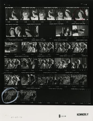 Keywords: Ford B0594 NLGRF photo contact sheet (1976-07-07)(Gerald Ford Library).jpg White House Photographic Office WHPO is housed at the Gerald R Ford Presidential Library a branch of the National Archives and Records Administration NARA <br/><br/> This file is a 200 dpi photo contact sheet having images from roll of film B0594 of the August 9 1974 - January 20 1977 Gerald R Ford White House Photographic Office Series A0001-A9999 and B0001-B2886 photographs <br/><br/> The date on the photo contact sheet is the date the roll of film was processed not necessarily the date the photographs were taken See table below for additional details 1976-07-07 Gerald R Ford Presidential Library Image http //www fordlibrarymuseum gov/library/whphotos/B0594_NLGRF jpg B0594_NLGRF jpg from http //www fordlibrarymuseum gov/library/whphotos/19760707whpo pdf White House Photographs July 7 1976 of the http //www fordlibrarymuseum gov/Library/whphotos/whpo asp White House Photographic Collection page White House Photographic Office WHPO <br/> Creator David Hume Kennerly PD-USGov Institution Institution Gerald R Ford Presidential Library Table wikitable sortable + Photo contact sheet B0594 U S President Ford Administration Gerald R Ford Library Frame s Tone Subject proper Subject generic Names Geographic Location Photographer Date - 1A BW State Dinner in Honor of Queen Elizabeth II and Prince Philip seated at table; lhead and shoulder portrait; eft side profile; white tie formal wear Queen Elizabeth II Tent on South Lawn Kennerly 1976-07-07 - 2A-4A BW State Dinner in Honor of Queen Elizabeth II and Prince Philip seated at table talking; head and shoulder portraits; white tie formal wear Rockefeller Queen Elizabeth II Tent on South Lawn Kennerly 1976-07-07 - 5A-7A BW State Dinner in Honor of Queen Elizabeth II and Prince Philip seated at table talking laughing; head and shoulder portraits; GRF right side profile; white tie formal wear GRF Queen Elizabeth II Tent on South Lawn Kennerly 1976-07-07 - 8A BW Kennerly 1976-07-07 - 9A BW State Dinner in Honor of Queen Elizabeth II and Prince Philip walking toward White House; musicians standing playing string instruments; formal waer John Connally Nellie Connally Others; Musicians South Lawn - Walkway to White House Kennerly 1976-07-07 - 10A BW State Dinner in Honor of Queen Elizabeth II and Prince Philip; United States Senator from Montana walking toward White House; musicians standing playing string instruments; formal waer Sen Mrs Mansfield Others; Musicians South Lawn -Walkway to White House Kennerly 1976-07-07 - 11A BW State Dinner in Honor of Queen Elizabeth II and Prince Philip; United States Senator from Montana walking toward White House; musicians standing playing string instruments; formal waer John Mrs Marsh Others; Musicians South Lawn - Walkway to White House Kennerly 1976-07-07 - 12A-16A BW Entertainment Portion of State Dinner in Honor of Queen Elizabeth II and Prince Philip seated smiling watching performance by The Captain and Tenille not seen ; white tie formal wear GRF Betty Ford Queen Elizabeth II Prince Philip; guests East Room Kennerly 1976-07-07 - 17A BW Entertainment Portion of State Dinner in Honor of Queen Elizabeth II and Prince Philip seated smiling watching performance by The Captain and Tenille not seen ; white tie formal wear Jack Ford Melinda McCloud East Room Kennerly 1976-07-07 - 18A-21A BW Entertainment Portion of State Dinner in Honor of Queen Elizabeth II and Prince Philip seated smiling watching performance by The Captain and Tenille not seen ; white tie formal wear; all not in every frame GRF Betty Ford Queen Elizabeth II Prince Philip; guests East Room Kennerly 1976-07-07 - 22A BW Entertainment Portion of State Dinner in Honor of Queen Elizabeth II and Prince Philip seated smiling watching performance by The Captain and Tenille not seen ; man smoking cigar; white tie formal wear Unidentified Man Woman East Room Kennerly 1976-07-07 - 23A-27A BW Entertainment Portion of State Dinner in Honor of Queen Elizabeth II and Prince Philip seated smiling laughing; watching performance Bob Hope not seen ; white tie formal wear; all not in every frame GRF Betty Ford Queen Elizabeth II Prince Philip; Vice President Mrs Rockefeller; guests East Room Kennerly 1976-07-07 Gerald R Ford Presidential Library and Museum-cooperation PD-USGov Contact sheets by the Ford White House July 1976 Photographs by David Hume Kennerly from 1976 |