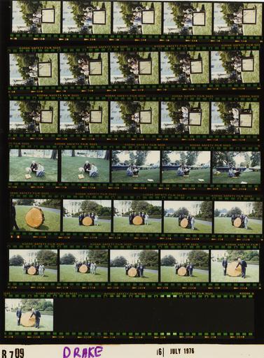 | Keywords: Ford B0709 NLGRF photo contact sheet (1976-07-16)(Gerald Ford Library).jpg White House Photographic Office WHPO is housed at the Gerald R Ford Presidential Library a branch of the National Archives and Records Administration NARA <br/><br/> This file is a 200 dpi photo contact sheet having images from roll of film B0709 of the August 9 1974 - January 20 1977 Gerald R Ford White House Photographic Office Series A0001-A9999 and B0001-B2886 photographs <br/><br/> The date on the photo contact sheet is the date the roll of film was processed not necessarily the date the photographs were taken See table below for additional details 1976-07-16 Gerald R Ford Presidential Library Image http //www fordlibrarymuseum gov/library/whphotos/B0709_NLGRF jpg B0709_NLGRF jpg from http //www fordlibrarymuseum gov/library/whphotos/19760716whpo pdf White House Photographs July 16 1976 of the http //www fordlibrarymuseum gov/Library/whphotos/whpo asp White House Photographic Collection page White House Photographic Office WHPO - Drake PD-USGov Institution Institution Gerald R Ford Presidential Library Table wikitable sortable + Photo contact sheet B0709 U S President Ford Administration Gerald R Ford Library Frame s Tone Subject proper Subject generic Names Geographic Location Photographer Date - 1A-15A Color Bicentennial Gift Presentation standing posing behind framed Declaration of Independence made of Alphabet noodles; all not in every frame; White House in background Mitler Others Rose Garden Drake 1976-07-16 - 16A-20A Color Bicentennial Gift Presentation stooping looking at gift on lawn; various angles and distances; parked cars in background in last 3 frames Mitler Unidentified Woman North Lawn Drake 1976-07-16 - 21A-31A Color Bicentennial Gift Presentation standing posing behind Redwood Tree Section with plaques indicating when American historical events occurred in the tree's rings; all notn in every frame; White House and Truman Balcony in background Mitler Unidentified Men South Lawn Drake 1976-07-16 Gerald R Ford Presidential Library and Museum-cooperation PD-USGov Contact sheets by the Ford White House July 1976 |
