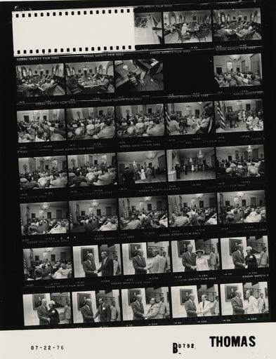 Keywords: Ford B0792 NLGRF photo contact sheet (1976-07-22)(Gerald Ford Library).jpg White House Photographic Office WHPO is housed at the Gerald R Ford Presidential Library a branch of the National Archives and Records Administration NARA <br/><br/> This file is a 200 dpi photo contact sheet having images from roll of film B0792 of the August 9 1974 - January 20 1977 Gerald R Ford White House Photographic Office Series A0001-A9999 and B0001-B2886 photographs <br/><br/> The date on the photo contact sheet is the date the roll of film was processed not necessarily the date the photographs were taken See table below for additional details 1976-07-22 Gerald R Ford Presidential Library Image http //www fordlibrarymuseum gov/library/whphotos/B0792_NLGRF jpg B0792_NLGRF jpg from http //www fordlibrarymuseum gov/library/whphotos/19760722whpo pdf White House Photographs July 22 1976 of the http //www fordlibrarymuseum gov/Library/whphotos/whpo asp White House Photographic Collection page White House Photographic Office WHPO - Thomas PD-USGov Institution Institution Gerald R Ford Presidential Library Table wikitable sortable + Photo contact sheet B0792 U S President Ford Administration Gerald R Ford Library Frame s Tone Subject proper Subject generic Names Geographic Location Photographer Date - 3A-6A BW Meeting to Discuss Federal Immunization Program Against Swine Influenza seated around table; various angles and distances GRF Mathews Theodore Cooper William H Taft Stanford Winston William Rhatican Cavanaugh P O'Neill Marsh Cabinet Room Thomas 1976-07-22 - 7A BW Camera lying on table White House Photo Office Thomas 1976-07-22 - 8A BW Thomas 1976-07-22 - 9A-25A BW Meeting with Delegates from New York to the Republican National Convention GRF at lectern speaking; others seated listening; various angles and distances; all not in every farme GRF Delegates from New York to the Republican National Convention; Others East Room Thomas 1976-07-22 - 26A BW Reception for Delegates from New York to the Republican National Convention greeting handshaking posing; Grand Staircase in background GRF Unidentified Man V Albano J Andre C Averello N Barbata C Barber R Batt V Battista R Bentley G Berlnger F Biondolillo R Black W Balke R Brady E Brennan J Brett E Cain E Cammarota D Campbell J Campbell R Carroll W Clark Others Cross Hall Thomas 1976-07-22 - 27A BW Reception for Delegates from New York to the Republican National Convention greeting handshaking posing; Grand Staircase in background GRF Unidentified Man V Albano J Andre C Averello N Barbata C Barber R Batt V Battista R Bentley G Berlnger F Biondolillo R Black W Balke R Brady E Brennan J Brett E Cain E Cammarota D Campbell J Campbell R Carroll W Clark Others Cross Hall Thomas 1976-07-22 - 28A BW Reception for Delegates from New York to the Republican National Convention greeting handshaking posing; Grand Staircase in background GRF Unidentified Woman M Ackerman J Baker L Bennett J Biddle E Block P Carbo L Casey E Corcoran I Dodd D Edwards C Freda M Getman A Haines J Havel S Huckvale S Jefferson G Jones B Kaplan P Kelly F Leavenworth F Lopresto Others Cross Hall Thomas 1976-07-22 - 29A-30A BW Reception for Delegates from New York to the Republican National Convention greeting handshaking posing; Grand Staircase in background GRF Unidentified Woman M Ackerman J Baker L Bennett J Biddle E Block P Carbo L Casey E Corcoran I Dodd D Edwards C Freda M Getman A Haines J Havel S Huckvale S Jefferson G Jones B Kaplan P Kelly F Leavenworth F Lopresto Others Cross Hall Thomas 1976-07-22 - 31A BW Reception for Delegates from New York to the Republican National Convention greeting handshaking posing; Grand Staircase in background GRF Unidentified Man V Albano J Andre C Averello N Barbata C Barber R Batt V Battista R Bentley G Berlnger F Biondolillo R Black W Balke R Brady E Brennan J Brett E Cain E Cammarota D Campbell J Campbell R Carroll W Clark Others Cross Hall Thomas 1976-07-22 - 32A BW Reception for Delegates from New York to the Republican National Convention greeting handshaking posing; Grand Staircase in background GRF Unidentified Man V Albano J Andre C Averello N Barbata C Barber R Batt V Battista R Bentley G Berlnger F Biondolillo R Black W Balke R Brady E Brennan J Brett E Cain E Cammarota D Campbell J Campbell R Carroll W Clark Others Cross Hall Thomas 1976-07-22 - 33A BW Reception for Delegates from New York to the Republican National Convention greeting handshaking posing; Grand Staircase in background GRF Unidentified Man V Albano J Andre C Averello N Barbata C Barber R Batt V Battista R Bentley G Berlnger F Biondolillo R Black W Balke R Brady E Brennan J Brett E Cain E Cammarota D Campbell J Campbell R Carroll W Clark Others Cross Hall Thomas 1976-07-22 - 34A BW Reception for Delegates from New York to the Republican National Convention greeting handshaking posing; Grand Staircase in background GRF Unidentified Man V Albano J Andre C Averello N Barbata C Barber R Batt V Battista R Bentley G Berlnger F Biondolillo R Black W Balke R Brady E Brennan J Brett E Cain E Cammarota D Campbell J Campbell R Carroll W Clark Others Cross Hall Thomas 1976-07-22 Gerald R Ford Presidential Library and Museum-cooperation PD-USGov Contact sheets by the Ford White House July 1976
