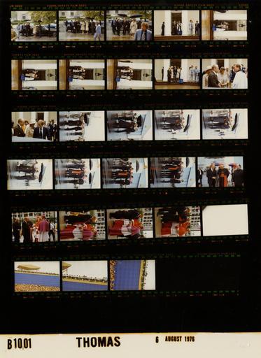 | Keywords: Ford B1001 NLGRF photo contact sheet (1976-08-08)(Gerald Ford Library).jpg White House Photographic Office WHPO is housed at the Gerald R Ford Presidential Library a branch of the National Archives and Records Administration NARA <br/><br/> This file is a 200 dpi photo contact sheet having images from roll of film B1001 of the August 9 1974 - January 20 1977 Gerald R Ford White House Photographic Office Series A0001-A9999 and B0001-B2886 photographs <br/><br/> The date on the photo contact sheet is the date the roll of film was processed not necessarily the date the photographs were taken See table below for additional details 1976-08-08 Gerald R Ford Presidential Library Image http //www fordlibrarymuseum gov/library/whphotos/B1001_NLGRF jpg B1001_NLGRF jpg from http //www fordlibrarymuseum gov/library/whphotos/19760808whpo pdf White House Photographs August 8 1976 of the http //www fordlibrarymuseum gov/Library/whphotos/whpo asp White House Photographic Collection page White House Photographic Office WHPO - Thomas PD-USGov Institution Institution Gerald R Ford Presidential Library Table wikitable sortable + Photo contact sheet B1001 U S President Ford Administration Gerald R Ford Library Frame s Tone Subject proper Subject generic Names Geographic Location Photographer Date - 3-5 Color Arrival for Sunday Worship Services Presidential party stepping from limousine; walking toward camera GRF Susan Ford Mike Gayle Ford Secret Service Others Washington DC Lafayette Square - St John's Episcopal Church Thomas 1976-08-08 - 6-13 Color Following Sunday Worship Services walking out door of church; standing talking handshaking; moving toward camera; all not in every frame GRF Susan Ford Mike Gayle Ford Minister Secret Service Others Washington DC Lafayette Square - St John's Episcopal Church Thomas 1976-08-08 - 14-22 Color Trip to Philadelphia PA greeting handshaking standing talking; under umbrellas; all not in every frame GRF Cardinals Kroll Bernardin Mayor Rizzo; Others Philadelphia PA Philadelphia International Airport Thomas 1976-08-08 - 23-26 Color Trip to Philadelphia PA - Prior to 41st International Eucharistic Congress greeting handshaking standing talking GRF Cardinals Cooke Baum; Archbishop Jadot Philadelphia PA The Spectrum - Outside Thomas 1976-08-08 - 27 Color Thomas 1976-08-08 - 28-30 BW Trip to Philadelphia PA - 41st International Eucharistic Congress GRF standing at lectern speaking; low angle shot taken from long distance; faces indiscernible; all not in very frame GRF Cardinals Krol Bernardin Rev Basil Losten Orthodox Clergy Philadelphia PA John F Kennedy Stadium Kennerly 1976-08-08 Gerald R Ford Presidential Library and Museum-cooperation PD-USGov Contact sheets by the Ford White House August 1976 |