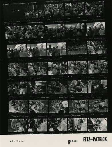 Keywords: Ford B1205 NLGRF photo contact sheet (1976-08-16)(Gerald Ford Library).jpg White House Photographic Office WHPO is housed at the Gerald R Ford Presidential Library a branch of the National Archives and Records Administration NARA <br/><br/> This file is a 200 dpi photo contact sheet having images from roll of film B1205 of the August 9 1974 - January 20 1977 Gerald R Ford White House Photographic Office Series A0001-A9999 and B0001-B2886 photographs <br/><br/> The date on the photo contact sheet is the date the roll of film was processed not necessarily the date the photographs were taken See table below for additional details 1976-08-16 Gerald R Ford Presidential Library Image http //www fordlibrarymuseum gov/library/whphotos/B1205_NLGRF jpg B1205_NLGRF jpg from http //www fordlibrarymuseum gov/library/whphotos/19760816whpo pdf White House Photographs August 16 1976 of the http //www fordlibrarymuseum gov/Library/whphotos/whpo asp White House Photographic Collection page White House Photographic Office WHPO - Fitz-Patrick PD-USGov Institution Institution Gerald R Ford Presidential Library Table wikitable sortable + Photo contact sheet B1205 U S President Ford Administration Gerald R Ford Library Frame s Tone Subject proper Subject generic Names Geographic Location Photographer Date - 4A BW Trip to Kansas City Missouri - Convention - Meeting with Delegates and Alternates from Hawaii and Guam to the Republican National Convention GRF at lectern speaking; others seated listening; taken from back of room; all not in frame; floral shirts GRF Delegates Alternates from Hawaii Guam Kansas City MO Center Hotel - Centennial Room A Fitz-Patrick 1976-08-16 - 5A-11A BW Trip to Kansas City Missouri - Convention - Arrival for Coffee with the Presidentials President Ford Committee PFC Youth Group walking; greeting handshaking; various angles and distances; all not in every frame GRF Presidentials Kansas City MO K C Trade Mart - Youth Hold Center Fitz-Patrick 1976-08-16 - 12A-15A BW Trip to Kansas City Missouri - Convention GRF and Simon walking backs to camera; GRF's left arm behind Simon's back; wavig with right arm GRF William Simon Others Kansas City MO K C Trade Mart - Youth Hold Center Fitz-Patrick 1976-08-16 - 16A BW Trip to Kansas City Missouri - Convention - First Session of the Republican National Convention seated talking; taken from floor level Betty Ford Jack Ford Steve Ford Susan Ford Kansas City MO Kemper Arena Fitz-Patrick 1976-08-16 - 17A-33A BW Trip to Kansas City Missouri - Convention - First Session of the Republican National Convention on floor; wearing various headgear button signs etc ; various angles and distances; all not in every frame Delegates Alternates Kansas City MO Kemper Arena - Floor Fitz-Patrick 1976-08-16 - 34A-37 BW Trip to Kansas City Missouri - Convention - First Session of the Republican National Convention taking photographs; holding camera to eye in 3 frames; laughing on 4th frame Sen Baker Kansas City MO Kemper Arena - Floor Fitz-Patrick 1976-08-16 Gerald R Ford Presidential Library and Museum-cooperation PD-USGov Contact sheets by the Ford White House August 1976 |