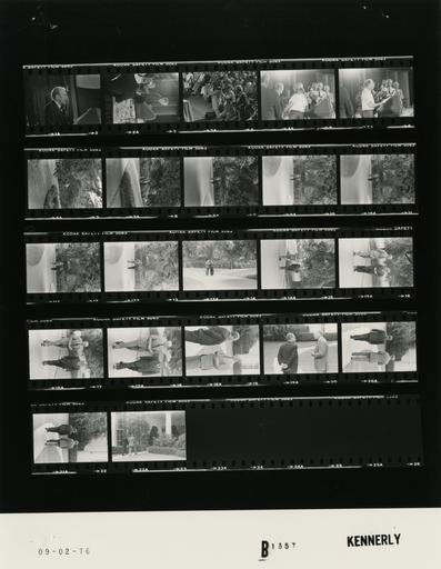 Keywords: Ford B1357 NLGRF photo contact sheet (1976-09-01)(Gerald Ford Library).jpg White House Photographic Office WHPO is housed at the Gerald R Ford Presidential Library a branch of the National Archives and Records Administration NARA <br/><br/> This file is a 200 dpi photo contact sheet having images from roll of film B1357 of the August 9 1974 - January 20 1977 Gerald R Ford White House Photographic Office Series A0001-A9999 and B0001-B2886 photographs <br/><br/> The date on the photo contact sheet is the date the roll of film was processed not necessarily the date the photographs were taken See table below for additional details 1976-09-01 Gerald R Ford Presidential Library Image http //www fordlibrarymuseum gov/library/whphotos/B1357_NLGRF jpg B1357_NLGRF jpg from http //www fordlibrarymuseum gov/library/whphotos/19760901whpo pdf White House Photographs September 1 1976 of the http //www fordlibrarymuseum gov/Library/whphotos/whpo asp White House Photographic Collection page White House Photographic Office WHPO <br/> Creator David Hume Kennerly PD-USGov Institution Institution Gerald R Ford Presidential Library Table wikitable sortable + Photo contact sheet B1357 U S President Ford Administration Gerald R Ford Library Frame s Tone Subject proper Subject generic Names Geographic Location Photographer Date - 1A-2A BW 98th General Conference of the National Guard Associations of the United States standing at lectern speaking; 1st frame close up GRF Washington DC Washington Hilton Hotel - International Ballroom Kennerly 1976-09-01 - 3A BW 98th General Conference of the National Guard Associations of the United States gathered in front of lectern Media Washington DC Washington Hilton Hotel - International Ballroom Kennerly 1976-09-01 - 4A-5A BW 98th General Conference of the National Guard Associations of the United States standing talking near lectern; all not in frames GRF Maj Gens McMillan Bryant Warfield Miller Corning Weber Johnston; Brig Gens Higgins Walker; Lynn Washington DC Washington Hilton Hotel - International Ballroom Kennerly 1976-09-01 - 6A-17A BW walking talking; moving toward camera GRF Kissinger South Driveway Kennerly 1976-09-02 - 18A-19A BW standing talking; Oval Office in background GRF Kissinger Brick Path Between Oval Office and South Driveway Kennerly 1976-09-02 - 20A-22A BW walking talking backs to camera; Oval Office in background GRF Kissinger Brick Path Between Oval Office and South Driveway Kennerly 1976-09-02 Gerald R Ford Presidential Library and Museum-cooperation PD-USGov Contact sheets by the Ford White House September 1976 Photographs by David Hume Kennerly from 1976 |