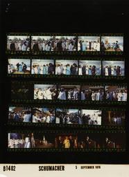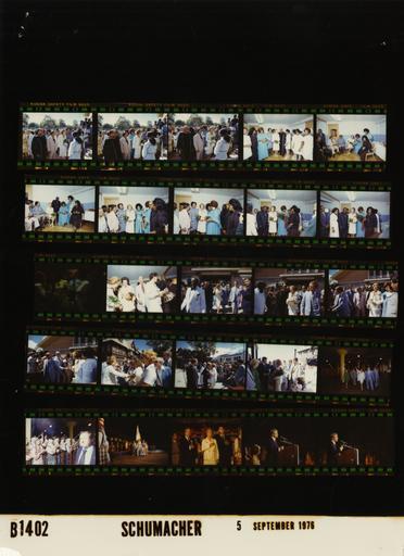 Keywords: Ford B1402 NLGRF photo contact sheet (1976-09-05)(Gerald Ford Library).jpg White House Photographic Office WHPO is housed at the Gerald R Ford Presidential Library a branch of the National Archives and Records Administration NARA <br/><br/> This file is a 200 dpi photo contact sheet having images from roll of film B1402 of the August 9 1974 - January 20 1977 Gerald R Ford White House Photographic Office Series A0001-A9999 and B0001-B2886 photographs <br/><br/> The date on the photo contact sheet is the date the roll of film was processed not necessarily the date the photographs were taken See table below for additional details 1976-09-05 Gerald R Ford Presidential Library Image http //www fordlibrarymuseum gov/library/whphotos/B1402_NLGRF jpg B1402_NLGRF jpg from http //www fordlibrarymuseum gov/library/whphotos/19760905whpo pdf White House Photographs September 5 1976 of the http //www fordlibrarymuseum gov/Library/whphotos/whpo asp White House Photographic Collection page White House Photographic Office WHPO - Schumacher PD-USGov Institution Institution Gerald R Ford Presidential Library Table wikitable sortable + Photo contact sheet B1402 U S President Ford Administration Gerald R Ford Library Frame s Tone Subject proper Subject generic Names Geographic Location Photographer Date - 1-3 Color First Lady's Trip to Illinois; Prior to Sunday Services at Shiloh Baptist Church - Waukegan Illinois greeting handshaking standing talking; various angles and distances; all not in every frame Betty Ford Rev Lightfoot Others Waukegan IL Shiloh Baptist Church - Outside Schumacher 1976-09-05 - 4-12 Color First Lady's Trip to Illinois; Reception Following Sunday Services at Shiloh Baptist Church - Waukegan Illinois greeting handshaking standing talking posing; various angles and distances; all not in every frame; 1 frame blank Betty Ford Rev J N Lightfoot H Moore Children; Mrs Thomas Mrs Howard Mrs Osorio Mr Shelton M M Wallace Dr M Taylor M M Giddens M M Hasty M M Wilson M Cole W Taylor J Rockingham A Rockingham B Green M M Casselberry M M Mines Others Waukegan IL Shiloh Baptist Church - Basement Schumacher 1976-09-05 - 13-17 Color First Lady's Trip to Illinois; Prior to Sunday Services at Shiloh Baptist Church - Waukegan Illinois greeting handshaking standing talking; various angles and distances; all not in every frame Betty Ford Rev Lightfoot Others Waukegan IL Shiloh Baptist Church - Outside Schumacher 1976-09-05 - 18-19 Color First Lady's Trip to Illinois - Arrival for Fifth Lithunian Folk Dance Festival BF greeting handshaking; holding bouquet of flowers Betty Ford Secret Service Others Chicago IL International Amphitheater - Outside Schumacher 1976-09-05 - 20-21 Color First Lady's Trip to Illinois - Arrival for Fifth Lithunian Folk Dance Festival BF walking waving Betty Ford Secret Service Others Chicago IL International Amphitheater Schumacher 1976-09-05 - 22 Color First Lady's Trip to Illinois - Fifth Lithunian Folk Dance Festival standing during the Presentation of the Colors; long shot Betty Ford Sen Percy Others Crowd Chicago IL International Amphitheater Schumacher 1976-09-05 - 23 Color First Lady's Trip to Illinois - Fifth Lithunian Folk Dance Festival standing for anthem; close up Betty Ford Sen Percy Others Crowd Chicago IL International Amphitheater Schumacher 1976-09-05 - 24-25 Color First Lady's Trip to Illinois - Fifth Lithunian Folk Dance Festival standing speaking at lectern; close up; right side profile Unidentified Man Chicago IL International Amphitheater Schumacher 1976-09-05 Gerald R Ford Presidential Library and Museum-cooperation PD-USGov Contact sheets by the Ford White House September 1976 |