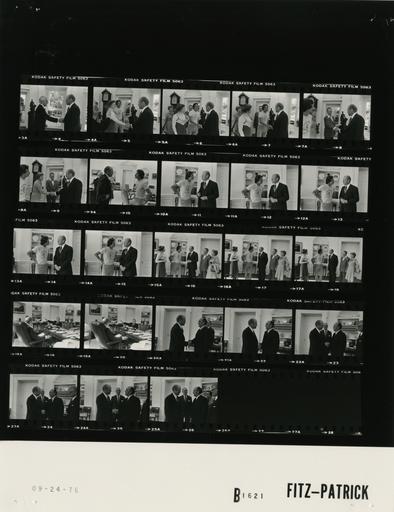 | Keywords: Ford B1621 NLGRF photo contact sheet (1976-09-24)(Gerald Ford Library).jpg White House Photographic Office WHPO is housed at the Gerald R Ford Presidential Library a branch of the National Archives and Records Administration NARA <br/><br/> This file is a 200 dpi photo contact sheet having images from roll of film B1621 of the August 9 1974 - January 20 1977 Gerald R Ford White House Photographic Office Series A0001-A9999 and B0001-B2886 photographs <br/><br/> The date on the photo contact sheet is the date the roll of film was processed not necessarily the date the photographs were taken See table below for additional details 1976-09-24 Gerald R Ford Presidential Library Image http //www fordlibrarymuseum gov/library/whphotos/B1621_NLGRF jpg B1621_NLGRF jpg from http //www fordlibrarymuseum gov/library/whphotos/19760924whpo pdf White House Photographs September 24 1976 of the http //www fordlibrarymuseum gov/Library/whphotos/whpo asp White House Photographic Collection page White House Photographic Office WHPO - Fitz-Patrick PD-USGov Institution Institution Gerald R Ford Presidential Library Table wikitable sortable + Photo contact sheet B1621 U S President Ford Administration Gerald R Ford Library Frame s Tone Subject proper Subject generic Names Geographic Location Photographer Date - 4 BW greeting handshaking GRF Mitler Oval Office Fitz-Patrick 1976-09-24 - 5-9 BW Meeting to Congratulate Mr Culley-Foster Upon Completion of San Francisco to Washington Run Across America-Boys Club '76 Program greeting handshaking; all not in every frame GRF Tony Culley-Foster Melinda Hoskins wife ; Orson Nancy Hoskins in-laws Oval Office Fitz-Patrick 1976-09-24 - 10-15 BW Meeting to Congratulate Mr Culley-Foster Upon Completion of San Francisco to Washington Run Across America-Boys Club '76 Program standing talking GRF Tony Culley-Foster Oval Office Fitz-Patrick 1976-09-24 - 16-18 BW Meeting to Congratulate Mr Culley-Foster Upon Completion of San Francisco to Washington Run Across America-Boys Club '76 Program standing posing GRF Tony Culley-Foster Melinda Hoskins wife ; Orson Nancy Hoskins in-laws Oval Office Fitz-Patrick 1976-09-24 - 19-20 BW Portland OR Radio and Television Commentator and Newspaper Columnist seated at desk talking; taken over GRF's right shoulder GRF Thomas McCall Oval Office Fitz-Patrick 1976-09-24 - 21-26 BW President-Elect of the United Mexican States; Ambassadors to United States and Mexico greeting handshaking; all not in frames GRF Jose Lopez-Portillo; Amb Jose Juan de Olloqui Amb John Jova Anthony Harvas Rnrique Loaeza; Charles Robinson Oval Office Fitz-Patrick 1976-09-24 Gerald R Ford Presidential Library and Museum-cooperation PD-USGov Contact sheets by the Ford White House September 1976 |