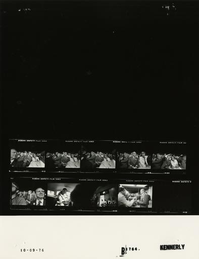 | Keywords: Ford B1764 NLGRF photo contact sheet (1976-10-09)(Gerald Ford Library).jpg White House Photographic Office WHPO is housed at the Gerald R Ford Presidential Library a branch of the National Archives and Records Administration NARA <br/><br/> This file is a 200 dpi photo contact sheet having images from roll of film B1764 of the August 9 1974 - January 20 1977 Gerald R Ford White House Photographic Office Series A0001-A9999 and B0001-B2886 photographs <br/><br/> The date on the photo contact sheet is the date the roll of film was processed not necessarily the date the photographs were taken See table below for additional details 1976-10-09 Gerald R Ford Presidential Library Image http //www fordlibrarymuseum gov/library/whphotos/B1764_NLGRF jpg B1764_NLGRF jpg from http //www fordlibrarymuseum gov/library/whphotos/19761009whpo pdf White House Photographs October 9 1976 of the http //www fordlibrarymuseum gov/Library/whphotos/whpo asp White House Photographic Collection page White House Photographic Office WHPO <br/> Creator David Hume Kennerly PD-USGov Institution Institution Gerald R Ford Presidential Library Table wikitable sortable + Photo contact sheet B1764 U S President Ford Administration Gerald R Ford Library Frame s Tone Subject proper Subject generic Names Geographic Location Photographer Date - 2A-7A BW Campaign Trip to Texas - Watching Texas-Oklahoma Football Game -Opening of the Texas State Fair seated in stands; watching football game not seen ; taken from low angle; all not in every frame GRF Connally Nellie Connally Others Dallas TX Cotton Bowl - Texas State Fairgrounds Kennerly 1976-10-09 - 8A BW Campaign Trip to Texas seated in limo; looking back toward camera; holding unidentified object Cheney Dallas TX Limousine Kennerly 1976-10-09 - 9A BW Campaign Trip to Texas GRF at microphone speaking; girls standing in background under Texas state flag GRF Girls in Western Attire Dallas TX Apparel Mart Kennerly 1976-10-09 - 10A BW Campaign Trip to Texas GRF speaking into hand-held microphone in foreground; crowd behind rope in background GRF Interviewer Crowd Dallas TX Apparel Mart - Outside Kennerly 1976-10-09 Gerald R Ford Presidential Library and Museum-cooperation PD-USGov Contact sheets by the Ford White House October 1976 Photographs by David Hume Kennerly from 1976 |