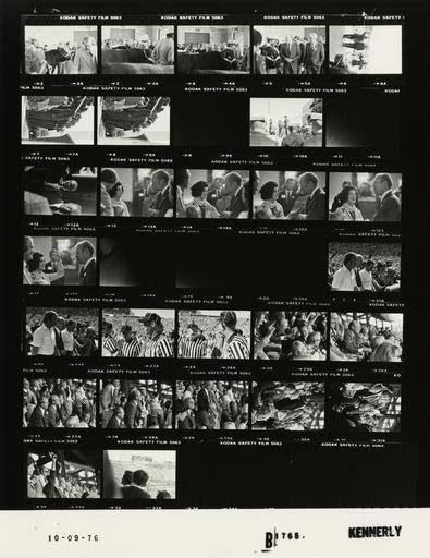 | Keywords: Ford B1765 NLGRF photo contact sheet (1976-10-09)(Gerald Ford Library).jpg White House Photographic Office WHPO is housed at the Gerald R Ford Presidential Library a branch of the National Archives and Records Administration NARA <br/><br/> This file is a 200 dpi photo contact sheet having images from roll of film B1765 of the August 9 1974 - January 20 1977 Gerald R Ford White House Photographic Office Series A0001-A9999 and B0001-B2886 photographs <br/><br/> The date on the photo contact sheet is the date the roll of film was processed not necessarily the date the photographs were taken See table below for additional details 1976-10-09 Gerald R Ford Presidential Library Image http //www fordlibrarymuseum gov/library/whphotos/B1765_NLGRF jpg B1765_NLGRF jpg from http //www fordlibrarymuseum gov/library/whphotos/19761009whpo pdf White House Photographs October 9 1976 of the http //www fordlibrarymuseum gov/Library/whphotos/whpo asp White House Photographic Collection page White House Photographic Office WHPO <br/> Creator David Hume Kennerly PD-USGov Institution Institution Gerald R Ford Presidential Library Table wikitable sortable + Photo contact sheet B1765 U S President Ford Administration Gerald R Ford Library Frame s Tone Subject proper Subject generic Names Geographic Location Photographer Date - 2-5 BW Campaign Trip to Texas - Visit to the Texas State Fair standing talking; various angles and distances; all not in every frame; cattle in some frames GRF Connally Ranchers; Black Angus Dallas TX Texas State Fairgrounds - Cattle Barn Kennerly 1976-10-09 - 6-8 BW Campaign Trip to Texas - Visit to the Texas State Fair GRF and Connolly on stage; backs to camera; crowd in background GRF Connally Others; Crowd Dallas TX Texas State Fairgrounds Kennerly 1976-10-09 - 9 BW Kennerly 1976-10-09 - 10 BW Campaign Trip to Texas - Visit to the Texas State Fair GRF and Connolly on stage standing; Connally at microphone; crowd in foreground; long shot GRF Connally Others; Crowd Dallas TX Texas State Fairgrounds Kennerly 1976-10-09 - 11 BW Kennerly 1976-10-09 - 12 BW Campaign Trip to Texas - Visit to the Texas State Fair GRF in foreground out of focus; Strauss talking to others in background GRF Robert Strauss Dallas TX Cotton Bowl - Texas State Fair Box Kennerly 1976-10-09 - 13-17 BW Campaign Trip to Texas - Visit to the Texas State Fair - Daughter and Son-in-law of Lyndon Baines Johnson standing talking laughing; Patrick not in all frames GRF Luci Johnson Nugent Patrick Nugent Dallas TX Cotton Bowl - Texas State Fair Box Kennerly 1976-10-09 - 18-20 BW Kennerly 1976-10-09 - 21-22 BW Campaign Trip to Texas - Prior to Coin Toss for Texas-Oklahoma Football Game - Opening of the Texas State Fair - Head Coaches University of Texas and University of Oklahoma Football Teams walking across field GRF Darrell Royal Barry Switzer Dallas TX Cotton Bowl - Texas State Fairgrounds Kennerly 1976-10-09 - 23-24 BW Campaign Trip to Texas - Prior to Coin Toss for Texas-Oklahoma Football Game - Opening of the Texas State Fair - Head Coaches University of Texas and University of Oklahoma Football Teams standing talking; close range GRF Referees Dallas TX Cotton Bowl - Texas State Fairgrounds Kennerly 1976-10-09 - 25-32 BW Campaign Trip to Texas - Watching Texas-Oklahoma Football Game -Opening of the Texas State Fair seated in stands; watching football game not seen ; various angles and distances; all not in every frame GRF Connally Nellie Connally Others Dallas TX Cotton Bowl - Texas State Fairgrounds Kennerly 1976-10-09 - 33 BW Campaign Trip to Texas - Texas-Oklahoma Football Game - Opening of the Texas State Fair long shot backs of heads in foreground Crowd Dallas TX Cotton Bowl - Texas State Fairgrounds Kennerly 1976-10-09 Gerald R Ford Presidential Library and Museum-cooperation PD-USGov Contact sheets by the Ford White House October 1976 Photographs by David Hume Kennerly from 1976 |