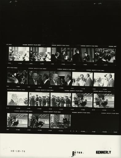| Keywords: Ford B1769 NLGRF photo contact sheet (1976-10-10)(Gerald Ford Library).jpg White House Photographic Office WHPO is housed at the Gerald R Ford Presidential Library a branch of the National Archives and Records Administration NARA <br/><br/> This file is a 200 dpi photo contact sheet having images from roll of film B1769 of the August 9 1974 - January 20 1977 Gerald R Ford White House Photographic Office Series A0001-A9999 and B0001-B2886 photographs <br/><br/> The date on the photo contact sheet is the date the roll of film was processed not necessarily the date the photographs were taken See table below for additional details 1976-10-10 Gerald R Ford Presidential Library Image http //www fordlibrarymuseum gov/library/whphotos/B1769_NLGRF jpg B1769_NLGRF jpg from http //www fordlibrarymuseum gov/library/whphotos/19761010whpo pdf White House Photographs October 10 1976 of the http //www fordlibrarymuseum gov/Library/whphotos/whpo asp White House Photographic Collection page White House Photographic Office WHPO <br/> Creator David Hume Kennerly PD-USGov Institution Institution Gerald R Ford Presidential Library Table wikitable sortable + Photo contact sheet B1769 U S President Ford Administration Gerald R Ford Library Frame s Tone Subject proper Subject generic Names Geographic Location Photographer Date - 3A-6A BW Campaign Trip to Texas - United States Senator from Texas seated talking in 1st 3 frames; standing talking in last; various angles and distances GRF Sen Tower Dallas TX Dallas-Fort Worth Airport - Airport Marina Hotel - President's Suite Kennerly 1976-10-10 - 7A-8A BW Campaign Trip to Texas - Attending Sunday Worship Services seated in pews listening; taken from left of GRF; all not in frames GRF Congregation Dallas TX First Baptist Church Kennerly 1976-10-10 - 9A-10A BW Campaign Trip to Texas - Following Sunday Worship Services standing talking; head and shoulder close ups GRF Rev Criswell Dallas TX First Baptist Church Kennerly 1976-10-10 - 11A-13A BW Campaign Trip to Texas - Prior to Departure for Andrews Air Force Base - Republican Candidate for 5th Congressional District of Texas standing talking posing GRF Nancy Judy Others Dallas TX Love Field Kennerly 1976-10-10 - 14A-15A BW Campaign Trip to Texas - Prior to Departure for Andrews Air Force Base greeting handshaking standing talking; all not in every frame Police Officers Nancy Judy Dallas TX Love Field Kennerly 1976-10-10 - 16A-20A BW Pet Golden Retrievers GRF standing near desk petting dog; both dogs not in all frames GRF Liberty Misty Oval Office Kennerly 1976-10-10 Gerald R Ford Presidential Library and Museum-cooperation PD-USGov Contact sheets by the Ford White House October 1976 Photographs by David Hume Kennerly from 1976 |