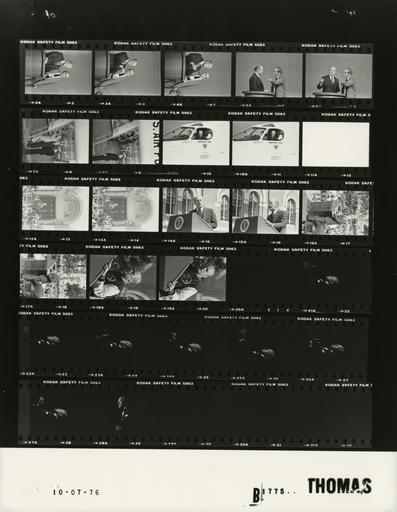 | Keywords: Ford B1775 NLGRF photo contact sheet (1976-10-06)(Gerald Ford Library).jpg White House Photographic Office WHPO is housed at the Gerald R Ford Presidential Library a branch of the National Archives and Records Administration NARA <br/><br/> This file is a 200 dpi photo contact sheet having images from roll of film B1775 of the August 9 1974 - January 20 1977 Gerald R Ford White House Photographic Office Series A0001-A9999 and B0001-B2886 photographs <br/><br/> The date on the photo contact sheet is the date the roll of film was processed not necessarily the date the photographs were taken See table below for additional details 1976-10-06 Gerald R Ford Presidential Library Image http //www fordlibrarymuseum gov/library/whphotos/B1775_NLGRF jpg B1775_NLGRF jpg from http //www fordlibrarymuseum gov/library/whphotos/19761006whpo pdf White House Photographs October 6 1976 of the http //www fordlibrarymuseum gov/Library/whphotos/whpo asp White House Photographic Collection page White House Photographic Office WHPO - Thomas PD-USGov Institution Institution Gerald R Ford Presidential Library Table wikitable sortable + Photo contact sheet B1775 U S President Ford Administration Gerald R Ford Library Frame s Tone Subject proper Subject generic Names Geographic Location Photographer Date - 3-7 BW Campaign Trip To California - Sound Check Before Second Presidential Debate Between Gerald R Ford and Jimmy Carter GRF standing at lectern; man standing next to GRF talking; medium range; various angles GRF Unidentified Man San Francisco CA Palace of Fine Arts - Stage Thomas 1976-10-06 - 8-9 BW Campaign Trip To California; Tour of North American Rockwell B-1V Division - Hawthorne California standing talking near ladder to B-1 Cockpit; GRF ascending ladder in 2nd frame; all not in frames GRF Robert Anderson Dale Myers Bastian Buzz Hello Charles Bock; Secret Service Hawthorne CA North American Rockwell - B-1V Division Hangar Thomas 1976-10-07 - 10-13 BW Campaign Trip To California; Tour of North American Rockwell B-1V Division - Hawthorne California seated in cockpit of B-1 Bomber; looking out side window; other man in background in cockpit; all not in frame; frame 12 overexposed GRF Robert Anderson Dale Myers Bastian Buzz Hello Charles Bock Hawthorne CA North American Rockwell - B-1V Division Hangar Thomas 1976-10-07 - 13-14 BW Campaign Trip To California - First Voter's Convocation University of Southeren California Los Angeles CA GRF at lectern speaking; platform guests seated in background; crowd backs to camera in foreground; long shots from behind crowd GRF J Hubbard J R Fluor John Naber Rickey Bell Others Crowd Los Angeles CA University of Southern California - Alumni Park - Doheny Library - Outside Thomas 1976-10-07 - 15-18 BW Campaign Trip To California - First Voter's Convocation University of Southeren California Los Angeles CA speaking at lectern; various angles and distances GRF Los Angeles CA University of Southern California - Alumni Park - Doheny Library - Outside Thomas 1976-10-07 - 19-20 BW Campaign Trip To California - First Voter's Convocation University of Southeren California Los Angeles CA speaking at lectern; wearing University of Southern California jacket GRF Los Angeles CA University of Southern California - Alumni Park - Doheny Library - Outside Thomas 1976-10-07 - 21 BW Thomas 1976-10-07 - 22-29 BW Campaign Trip To California - Beverly Hills California standing talking at lectern; taken from lower vantage point GRF Beverly Hills CA Beverly Hilton Hotel - International Ballroom Thomas 1976-10-07 Gerald R Ford Presidential Library and Museum-cooperation PD-USGov Contact sheets by the Ford White House October 1976 Soundcheck |