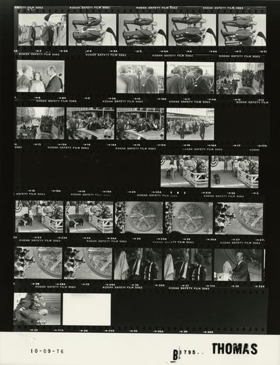 | Keywords: Ford B1795 NLGRF photo contact sheet (1976-10-09)(Gerald Ford Library).jpg White House Photographic Office WHPO is housed at the Gerald R Ford Presidential Library a branch of the National Archives and Records Administration NARA <br/><br/> This file is a 200 dpi photo contact sheet having images from roll of film B1795 of the August 9 1974 - January 20 1977 Gerald R Ford White House Photographic Office Series A0001-A9999 and B0001-B2886 photographs <br/><br/> The date on the photo contact sheet is the date the roll of film was processed not necessarily the date the photographs were taken See table below for additional details 1976-10-09 Gerald R Ford Presidential Library Image http //www fordlibrarymuseum gov/library/whphotos/B1795_NLGRF jpg B1795_NLGRF jpg from http //www fordlibrarymuseum gov/library/whphotos/19761009whpo pdf White House Photographs October 9 1976 of the http //www fordlibrarymuseum gov/Library/whphotos/whpo asp White House Photographic Collection page White House Photographic Office WHPO - Thomas PD-USGov Institution Institution Gerald R Ford Presidential Library Table wikitable sortable + Photo contact sheet B1795 U S President Ford Administration Gerald R Ford Library Frame s Tone Subject proper Subject generic Names Geographic Location Photographer Date - 3-7 BW Campaign Trip to Texas - Arrival in Dallas TX GRF and Connally greeting handshaking standing talking walking; others in background; nose of Air Force One in background GRF John Connolly Others Dallas TX Love Field Thomas 1976-10-09 - 8 BW Campaign Trip to Texas - Reception at Dallas Airport standing talking GRF Unidentified Man Woman Dallas TX Concourse - Love Field Thomas 1976-10-09 - 9 BW Thomas 1976-10-09 - 10-11 BW Campaign Trip to Texas - Arrival at Texas State Fair Parade - Governor of Texas standing talking laughing GRF John Connolly Gov Briscoe Dallas TX Parade Staging Area Thomas 1976-10-09 - 12-16 BW Campaign Trip to Texas - Texas State Fair Parade - Governor of Texas GRF and Briscoe standing in limousine heads through sunroof waving; Secret Service walking beside limousine; crowd on sidewalk; various angles and distances; all not in every frame GRF Gov Briscoe; Secret Service Crowd Dallas TX Street Thomas 1976-10-09 - 17-20 BW Thomas 1976-10-09 - 21-24 BW Campaign Trip to Texas - Texas State Fair GRF and others standing in enclosure looking at hogs; all not in every frame GRF John Connolly Farmers Crowd Dallas TX Texas State Fair - Swine Barn Thomas 1976-10-09 - 25-29 BW Campaign Trip to Texas - Texas State Fair GRF at lectern standing speaking; others seated; huge seal in background; all not in every frame; various distances; taken from back of hall GRF Platform Guests Crowd Dallas TX Texas State Fair - Texas Hall of State Building Thomas 1976-10-09 - 30-32 BW Campaign Trip to Texas - Texas State Fair woan giving GRF shawl; woman not in last frame GRF Unidentified Woman Dallas TX Texas State Fair - Texas Hall of State Building Thomas 1976-10-09 - 22 BW Campaign Trip to Texas - Texas State Fair GRF at lectern; others in background GRF Others Dallas TX Texas State Fair - Texas Hall of State Building Thomas 1976-10-09 Gerald R Ford Presidential Library and Museum-cooperation PD-USGov Contact sheets by the Ford White House October 1976 |