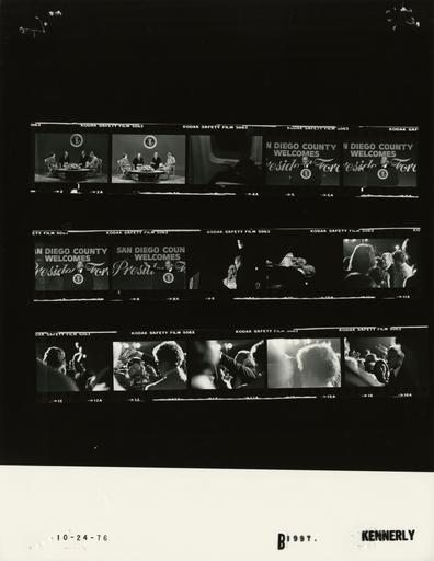Keywords: Ford B1997 NLGRF photo contact sheet (1976-10-24)(Gerald Ford Library).jpg White House Photographic Office WHPO is housed at the Gerald R Ford Presidential Library a branch of the National Archives and Records Administration NARA <br/><br/> This file is a 200 dpi photo contact sheet having images from roll of film B1997 of the August 9 1974 - January 20 1977 Gerald R Ford White House Photographic Office Series A0001-A9999 and B0001-B2886 photographs <br/><br/> The date on the photo contact sheet is the date the roll of film was processed not necessarily the date the photographs were taken See table below for additional details 1976-10-24 Gerald R Ford Presidential Library Image http //www fordlibrarymuseum gov/library/whphotos/B1997_NLGRF jpg B1997_NLGRF jpg from http //www fordlibrarymuseum gov/library/whphotos/19761024whpo pdf White House Photographs October 24 1976 of the http //www fordlibrarymuseum gov/Library/whphotos/whpo asp White House Photographic Collection page White House Photographic Office WHPO <br/> Creator David Hume Kennerly PD-USGov Institution Institution Gerald R Ford Presidential Library Table wikitable sortable + Photo contact sheet B1997 U S President Ford Administration Gerald R Ford Library Frame s Tone Subject proper Subject generic Names Geographic Location Photographer Date - 2-3 BW Campaign Trip to California - Interview with Joe Garagiola Edith Green and Steve Ford seated around coffee table GRF Joe Garagiola Edith Green Steve Ford Los Angeles CA KABC-TV Studio Kennerly 1976-10-24 - 4 BW Kennerly 1976-10-24 - 5-8 BW Campaign Trip to California; Rally at the Grossmont Shopping Center - La Mesa California speaking at lectern; large San Diego County Welcomes President Ford sign in background GRF La Mesa CA Grossmont Shopping Center -Broadway Department Store Kennerly 1976-10-24 - 9-10 BW Campaign Trip to California; Rally at the Grossmont Shopping Center - La Mesa California standing at lectern GRF Unidentified Woman La Mesa CA Grossmont Shopping Center -Broadway Department Store Kennerly 1976-10-24 - 11-16 BW Campaign Trip to California; Following Rally at the Grossmont Shopping Center - La Mesa California greeting handshaking talking; all not in every frame GRF Crowd La Mesa CA Grossmont Shopping Center -Broadway Department Store Kennerly 1976-10-24 Gerald R Ford Presidential Library and Museum-cooperation PD-USGov Contact sheets by the Ford White House October 1976 Photographs by David Hume Kennerly from 1976 |